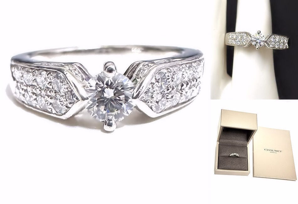 CHAUMET ショーメ プリュム ソリテール ダイヤモンド リング VS2 0.25ct プラチナ 指輪 7号 鑑別書付き ケース ダイヤ