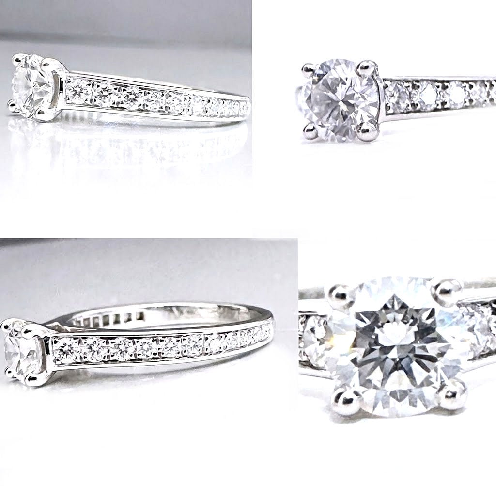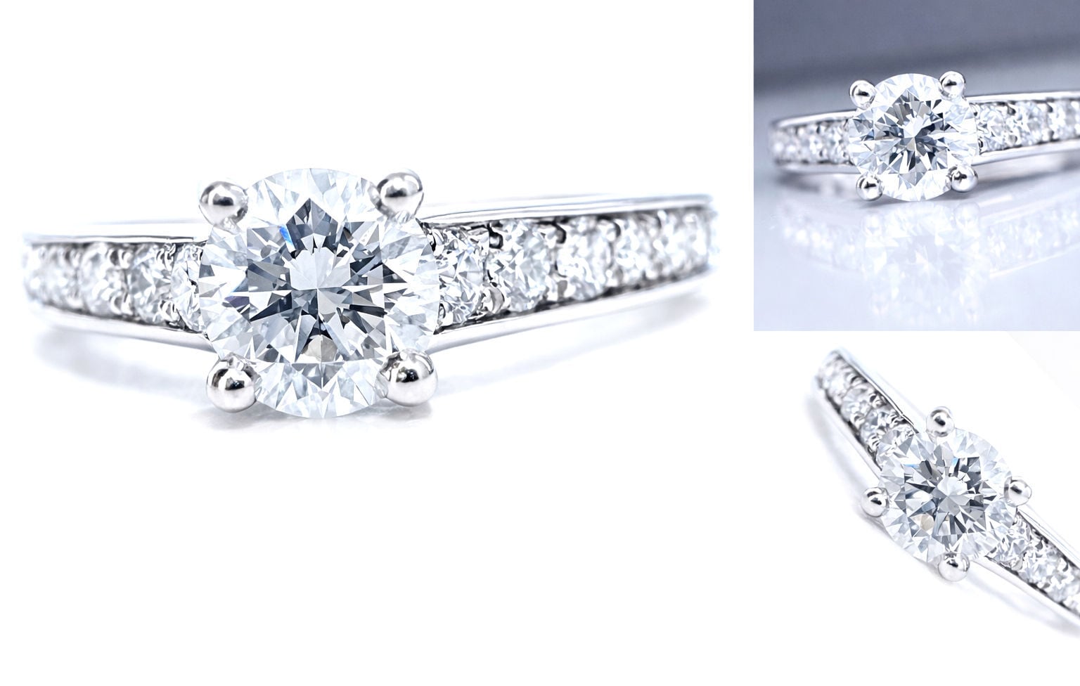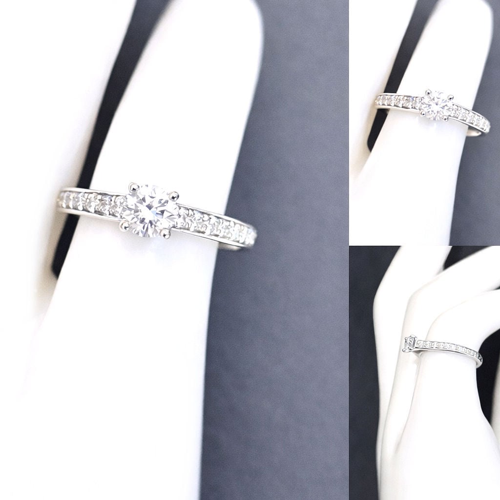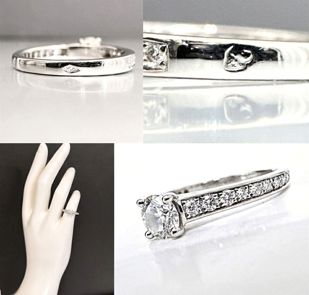 永遠に色褪せる事がないプラチナ素材に、その高品質なダイヤの輝きが存在感あり美しいです。