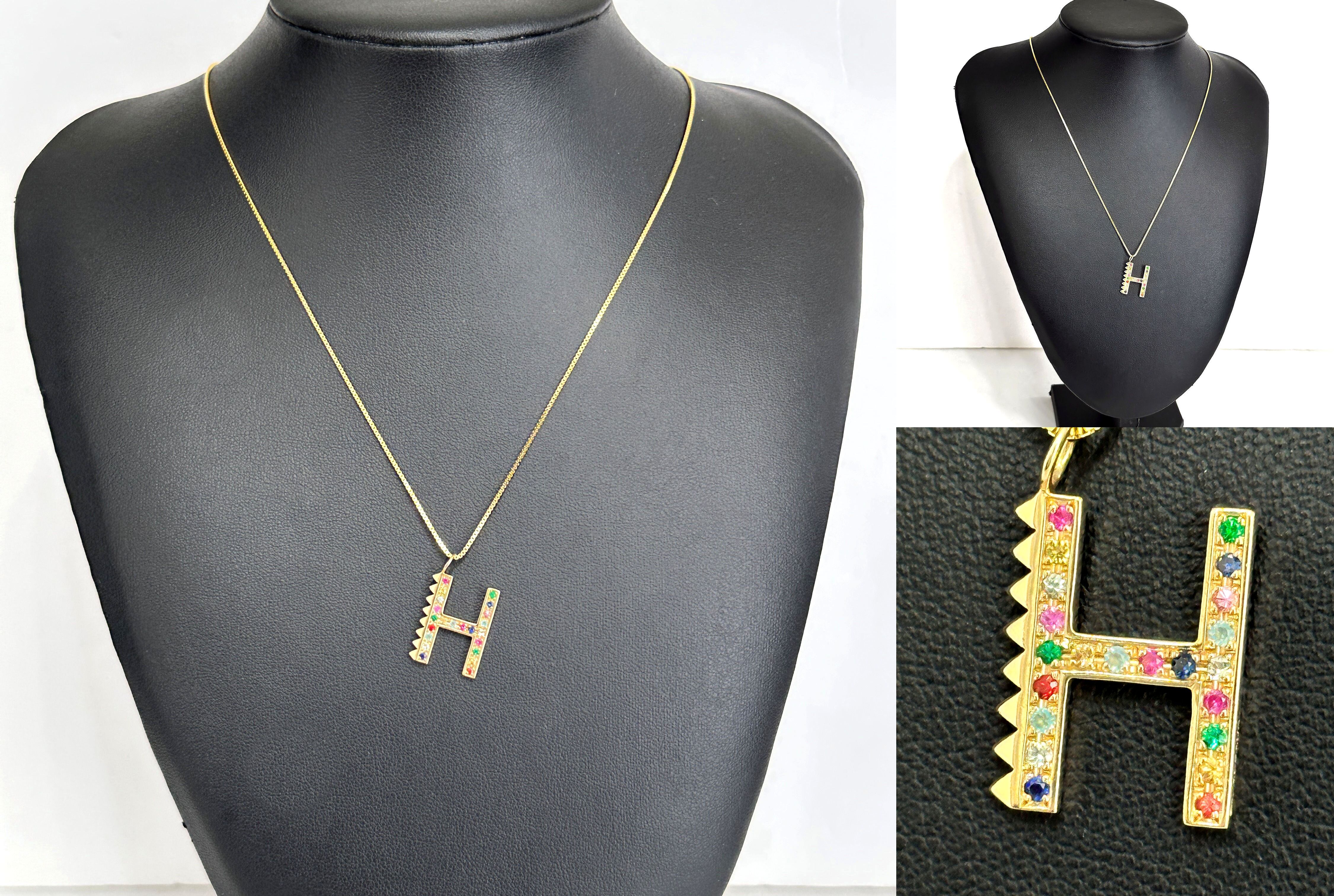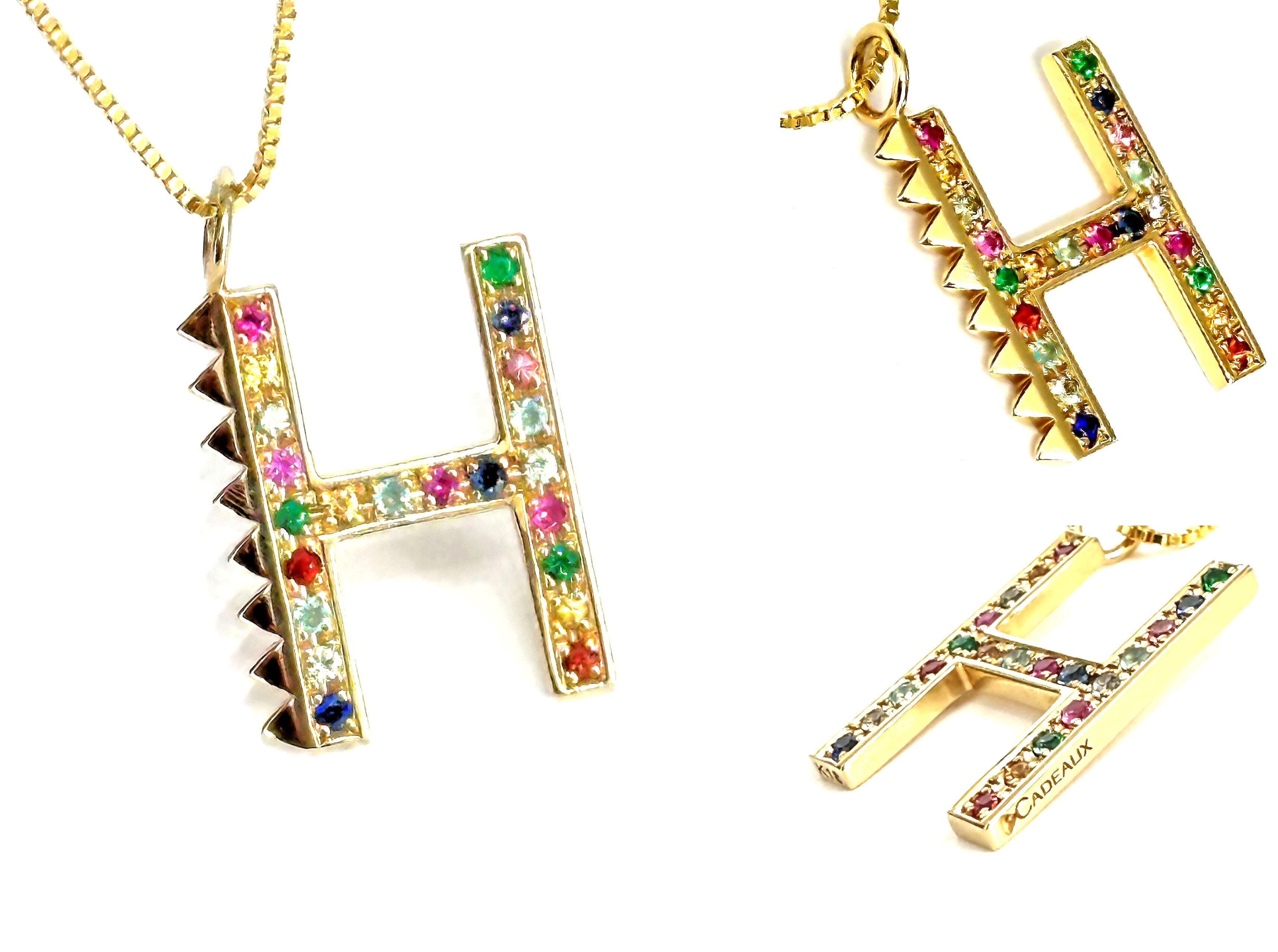 cadeaux カドー スタッズ イニシャル ペンダント K18 YG H エメラルド サファイヤ ルビー マルチカラー ネックレス チェーン付 定価462000円 入手困難 ギャランティー 完備 保証書 イエローゴールド
