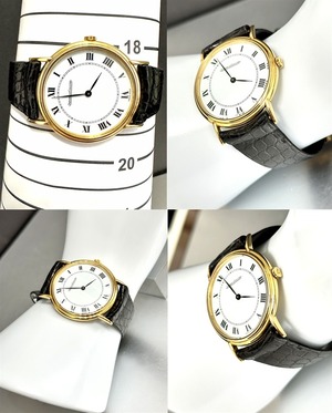 上品でクラシカルなホワイトローマンインデックスで、その周りを取り囲むK18イエローゴールドケースが高級感と上質さを感じさせてくれます。
