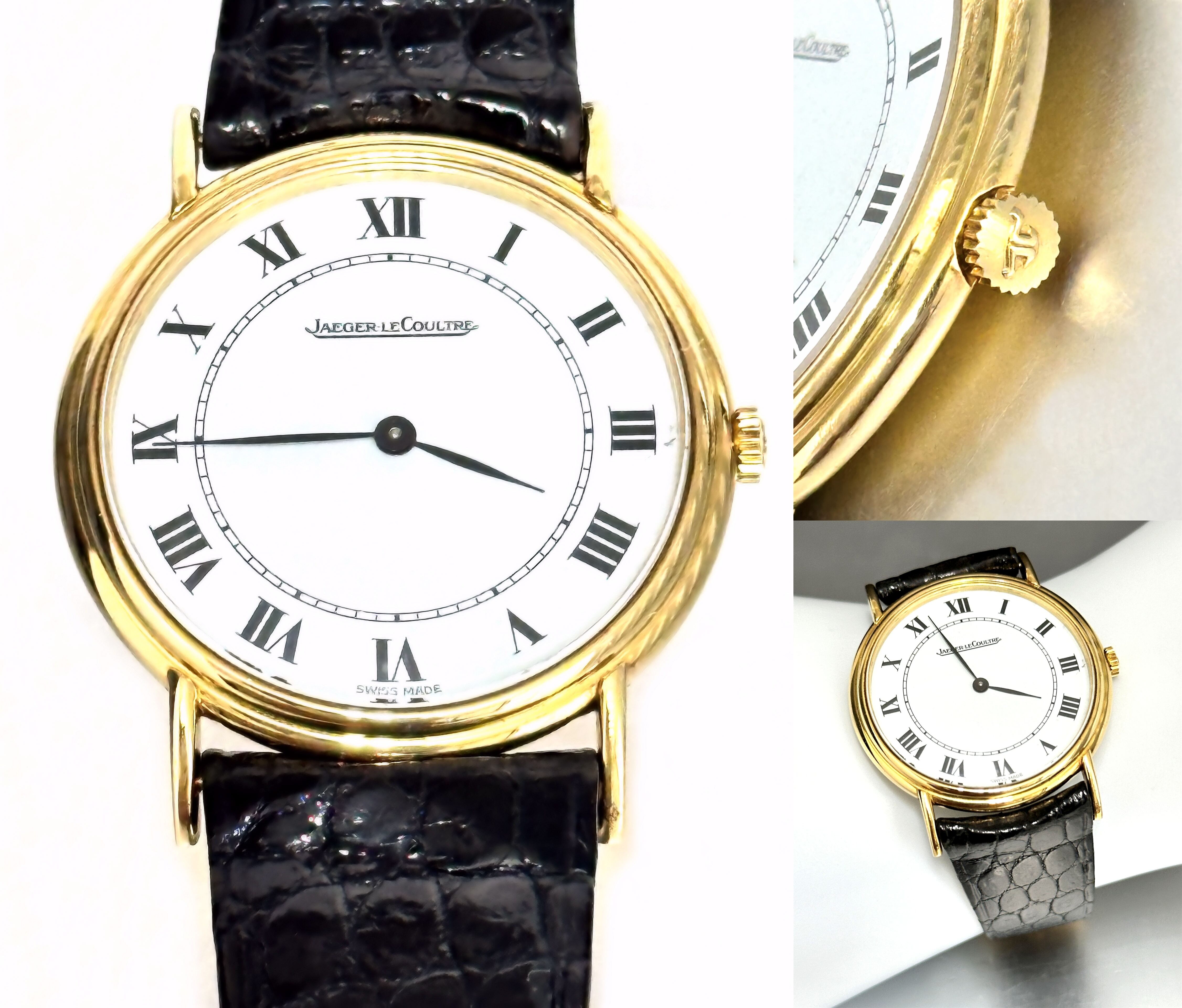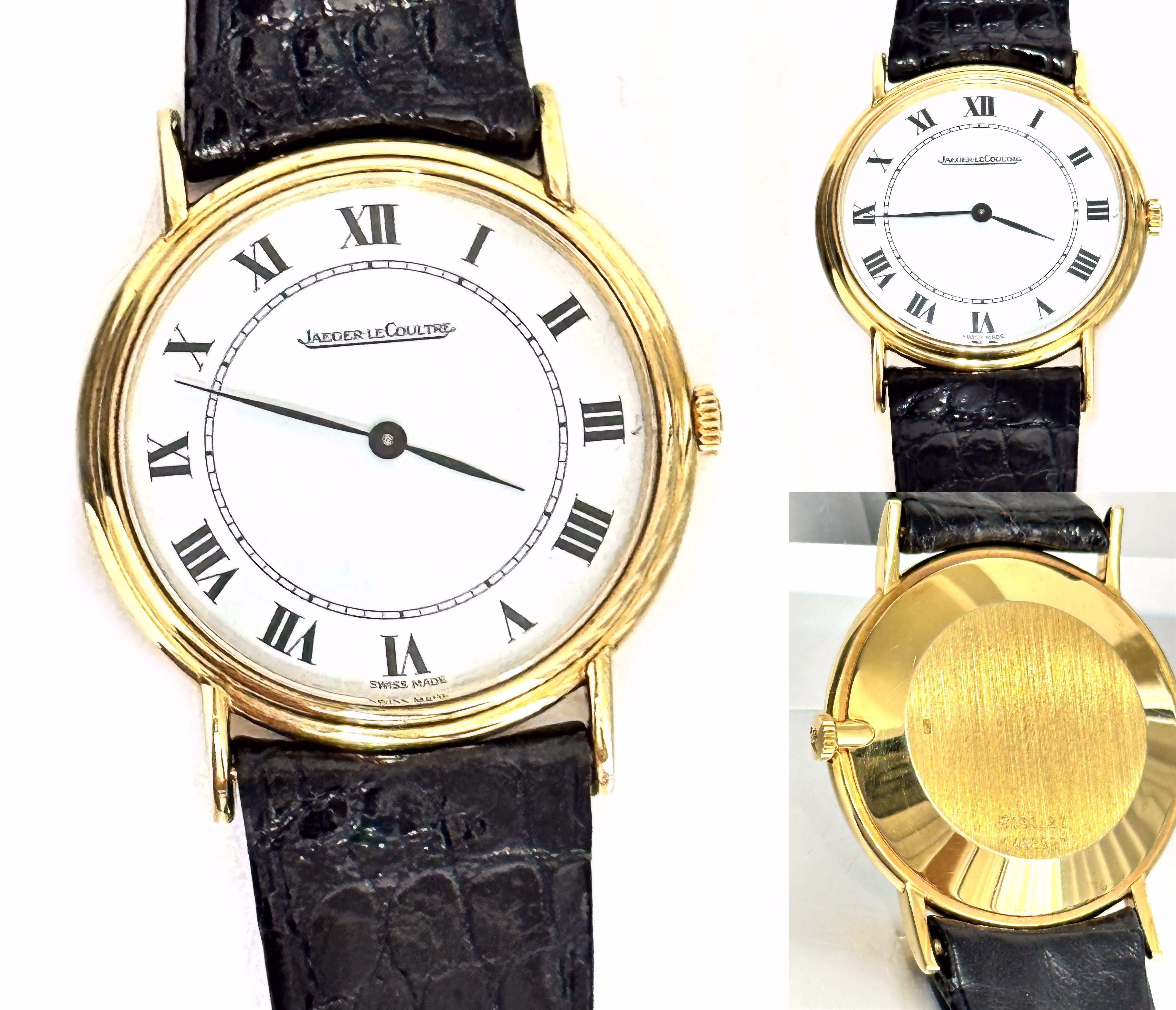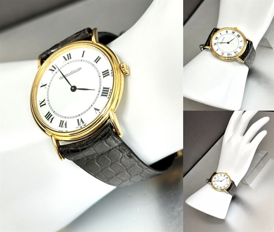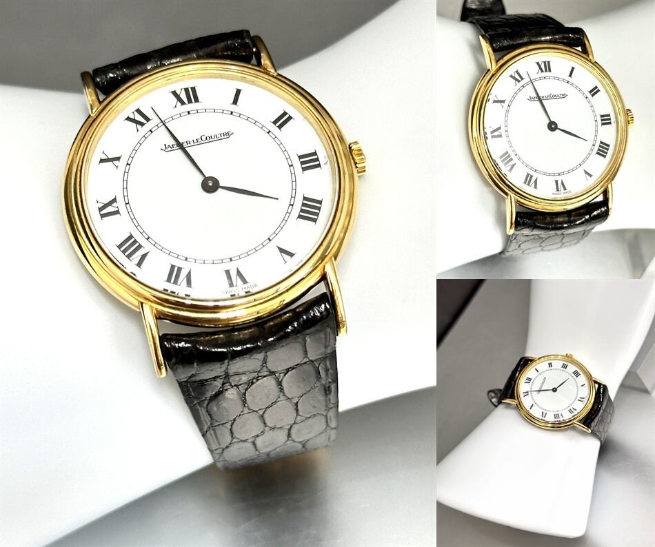 Jaeger LeCoultre ジャガールクルト K18 YG ホワイトローマン 34mm 金無垢 手巻き 時計 ヴィンテージ メンズ