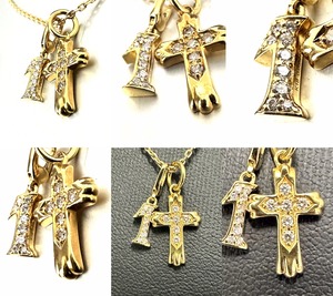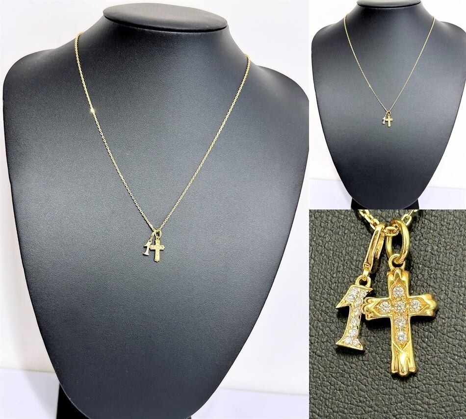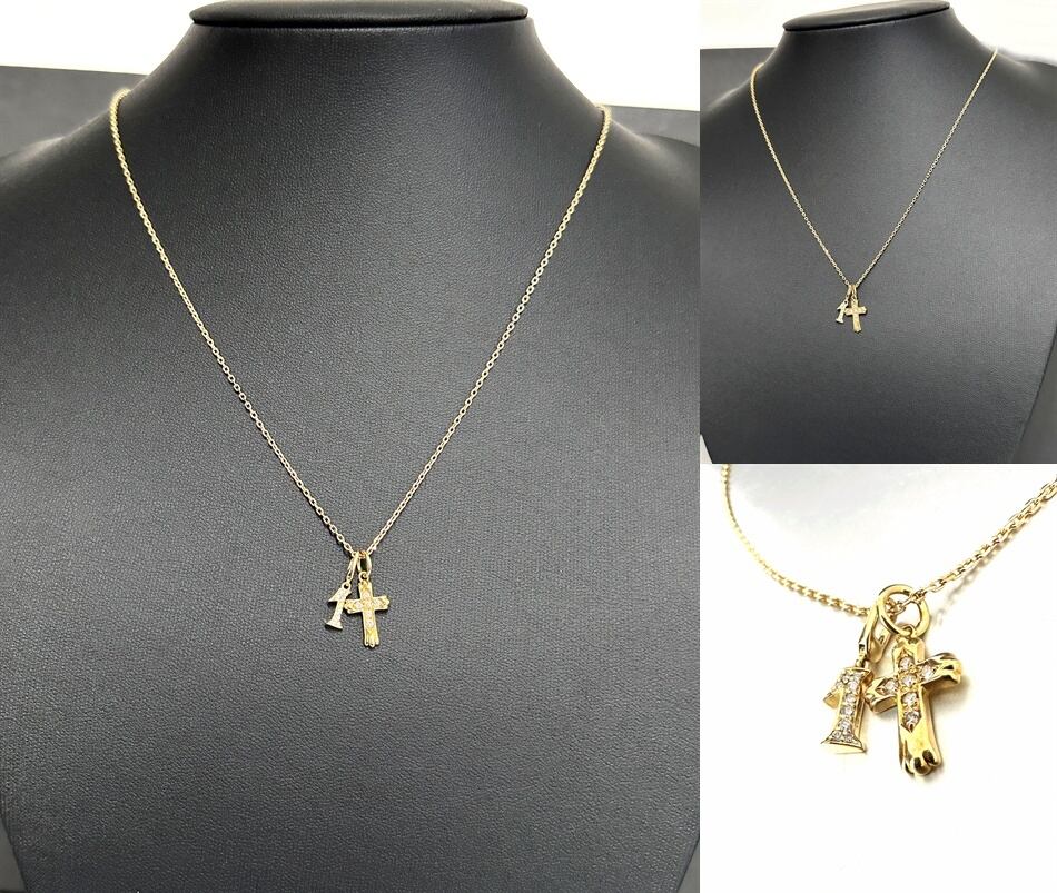 K18YG クロスチャーム ダイヤモンド ネックレス 0.07ct