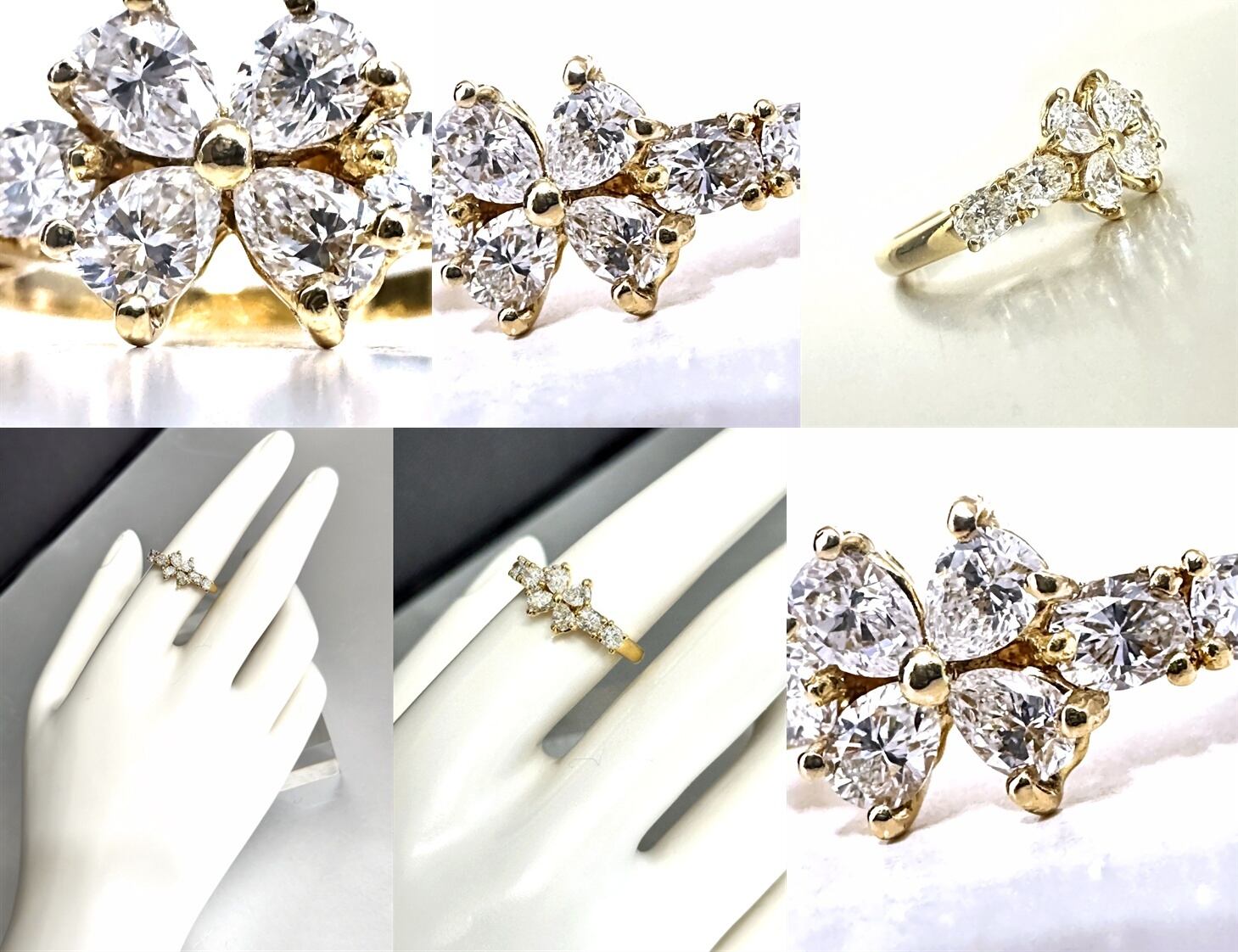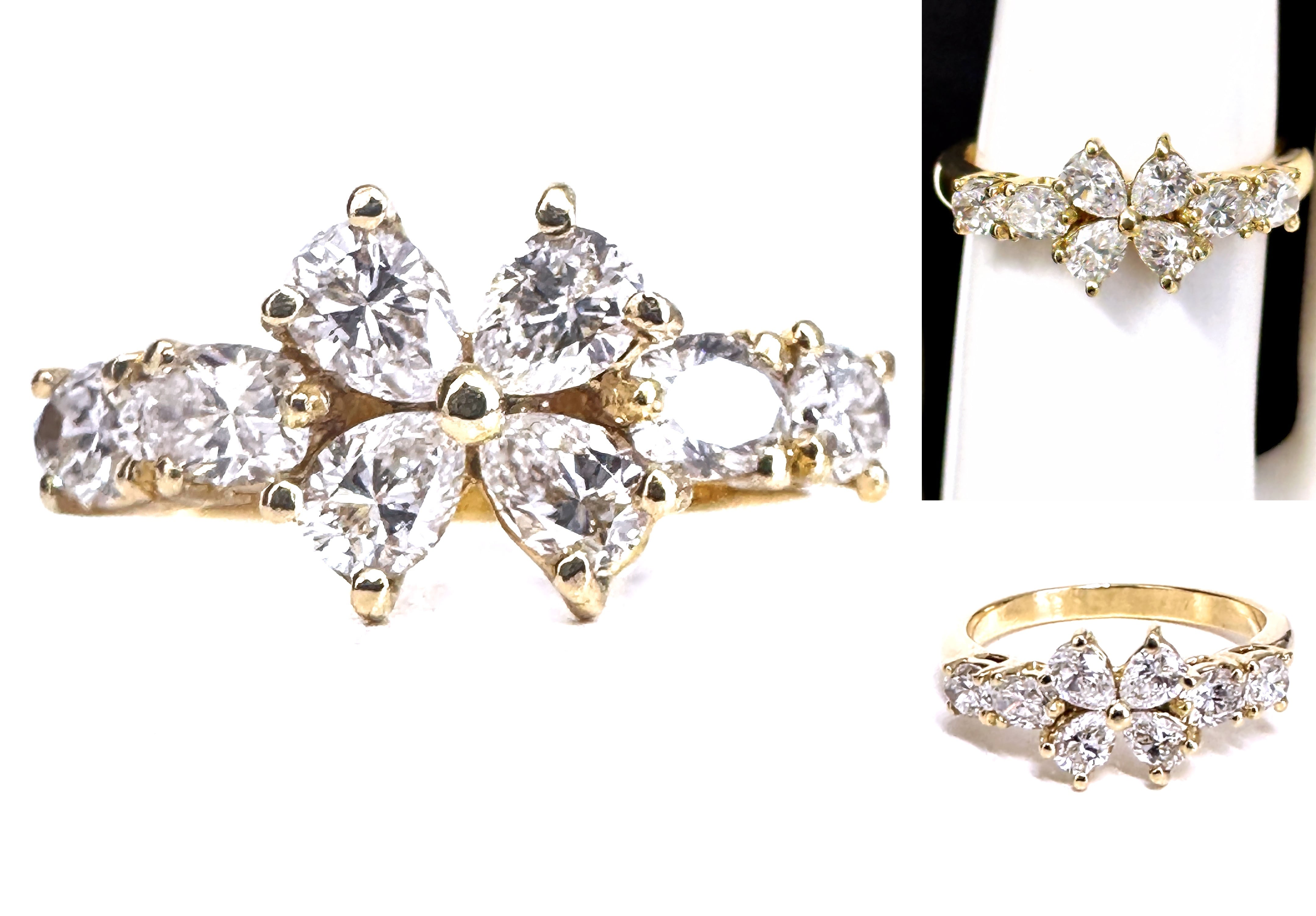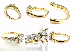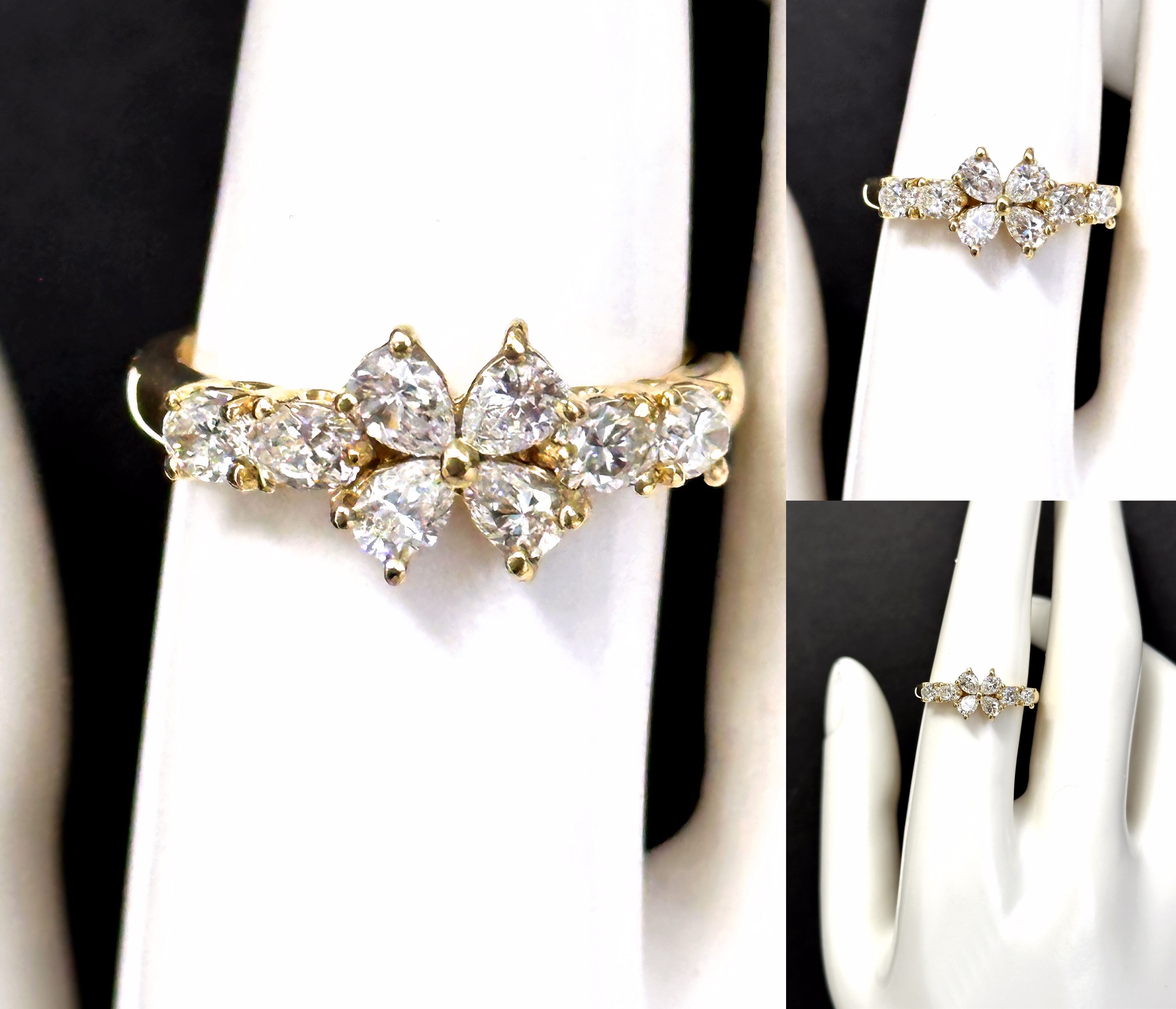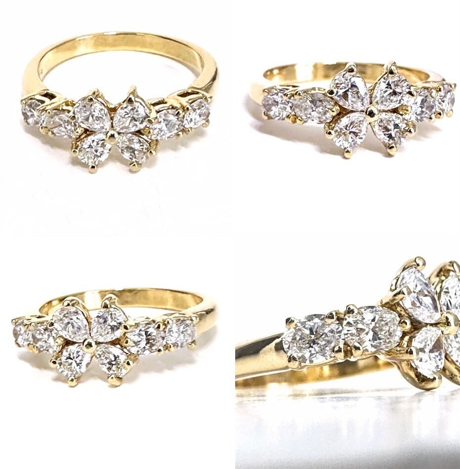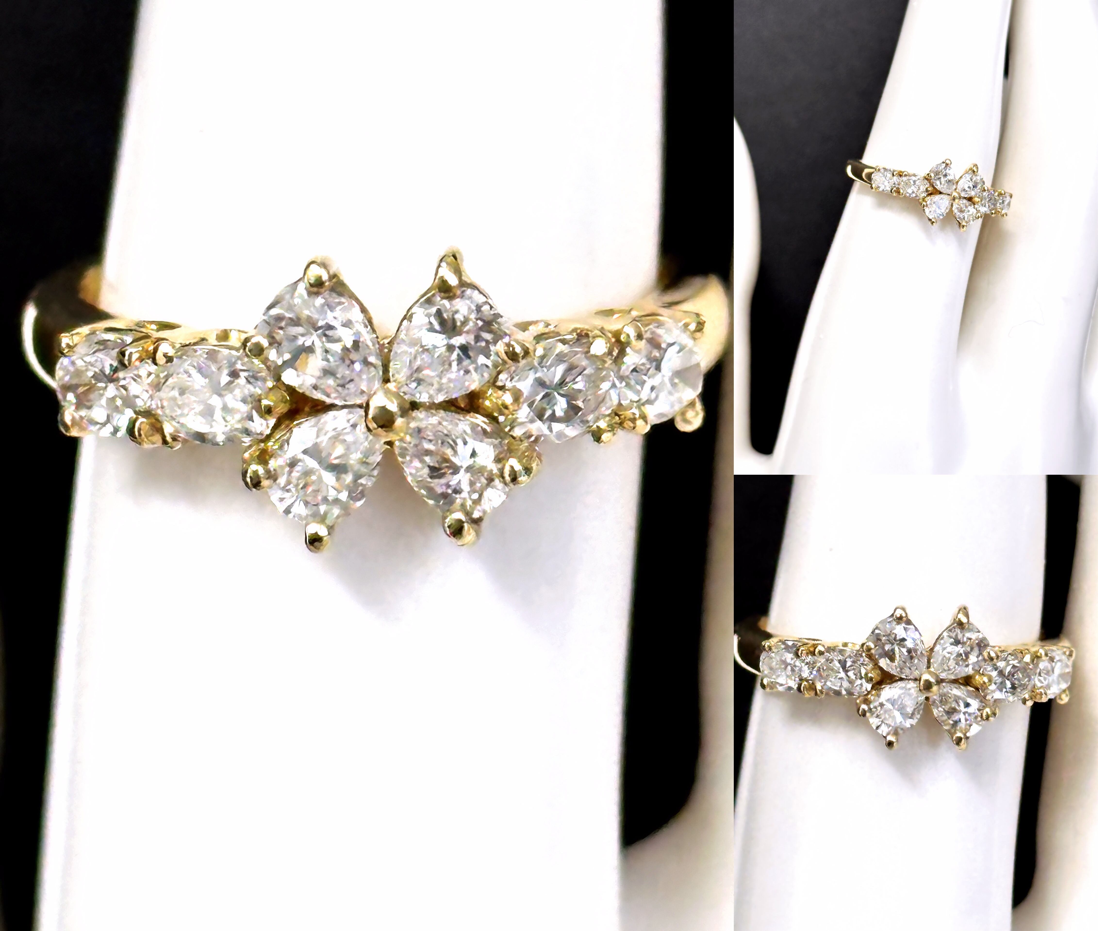Queen クイーン ジュエリー マーガレット ダイヤモンド リング 1.11ct K18 YG ゴールド 平和堂 8P マーキス ダイヤ
