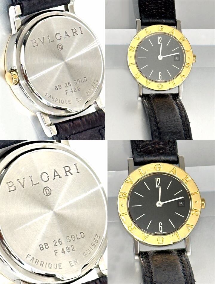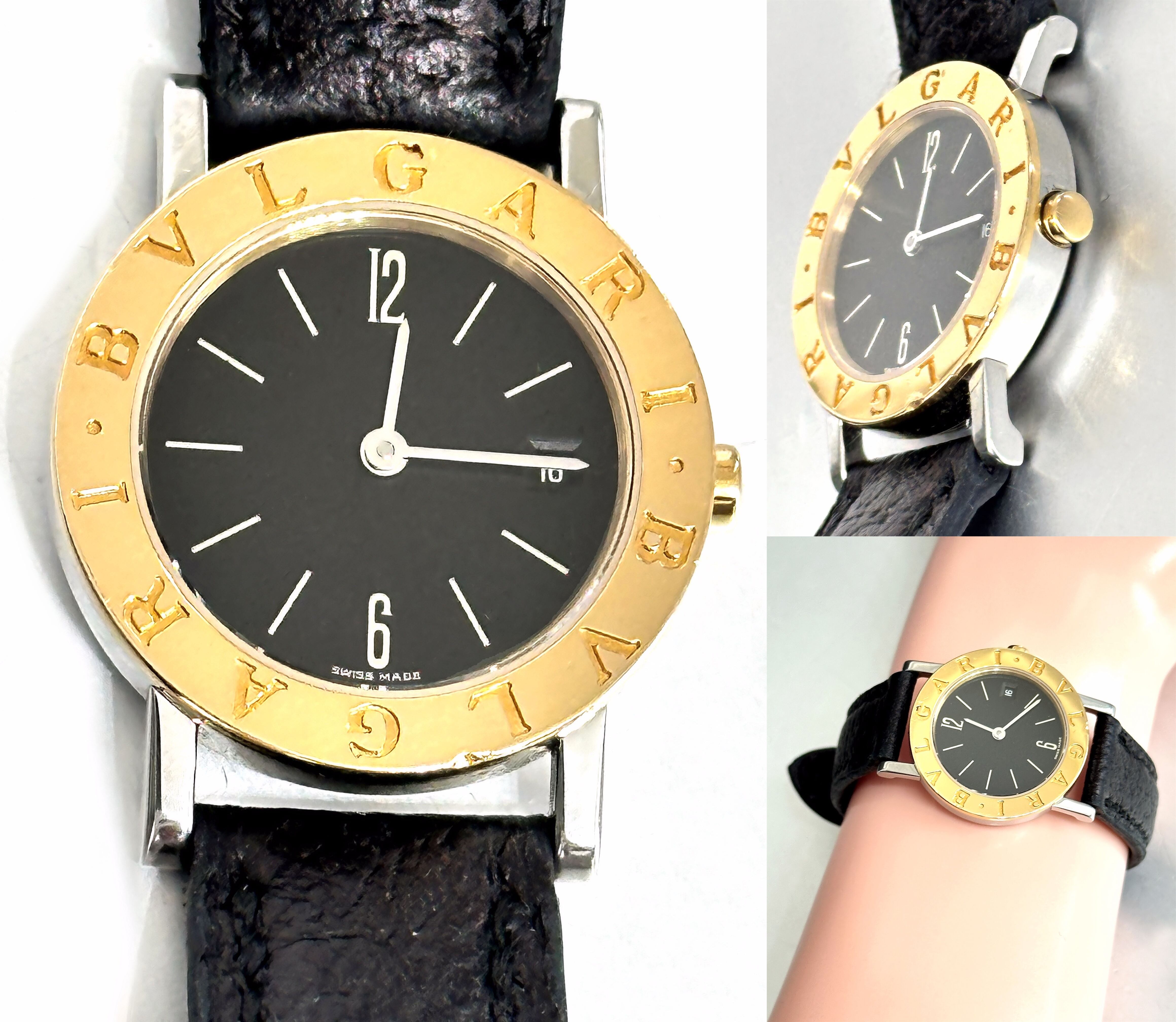 BVLGARI ブルガリブルガリ BB26SGLD デイト K18 YG SS ブラック 時計 純正 レディース レザー 黒 ゴールド ブルガリ