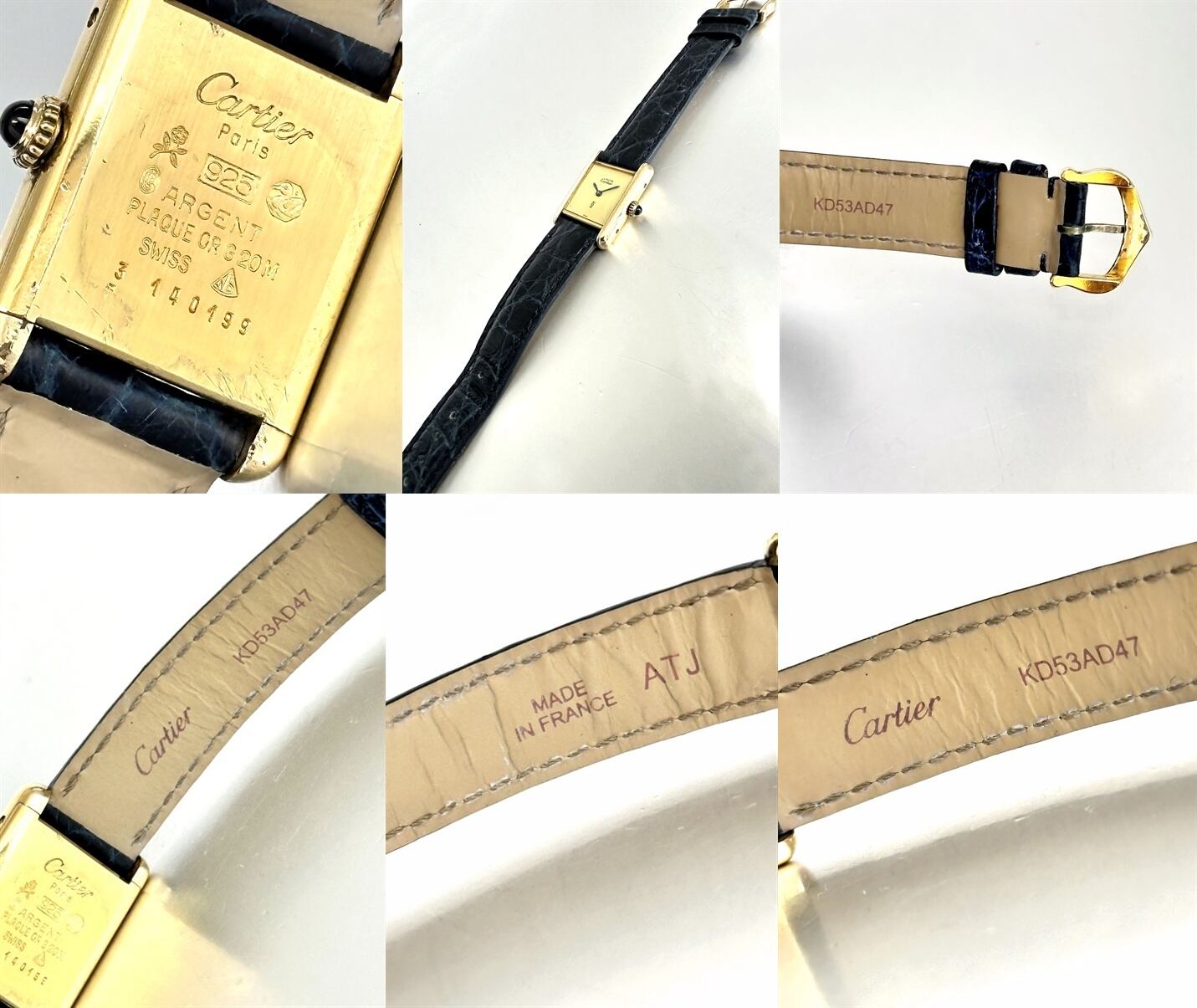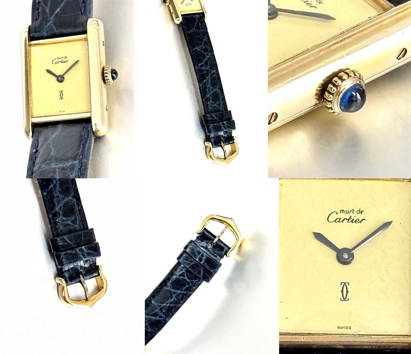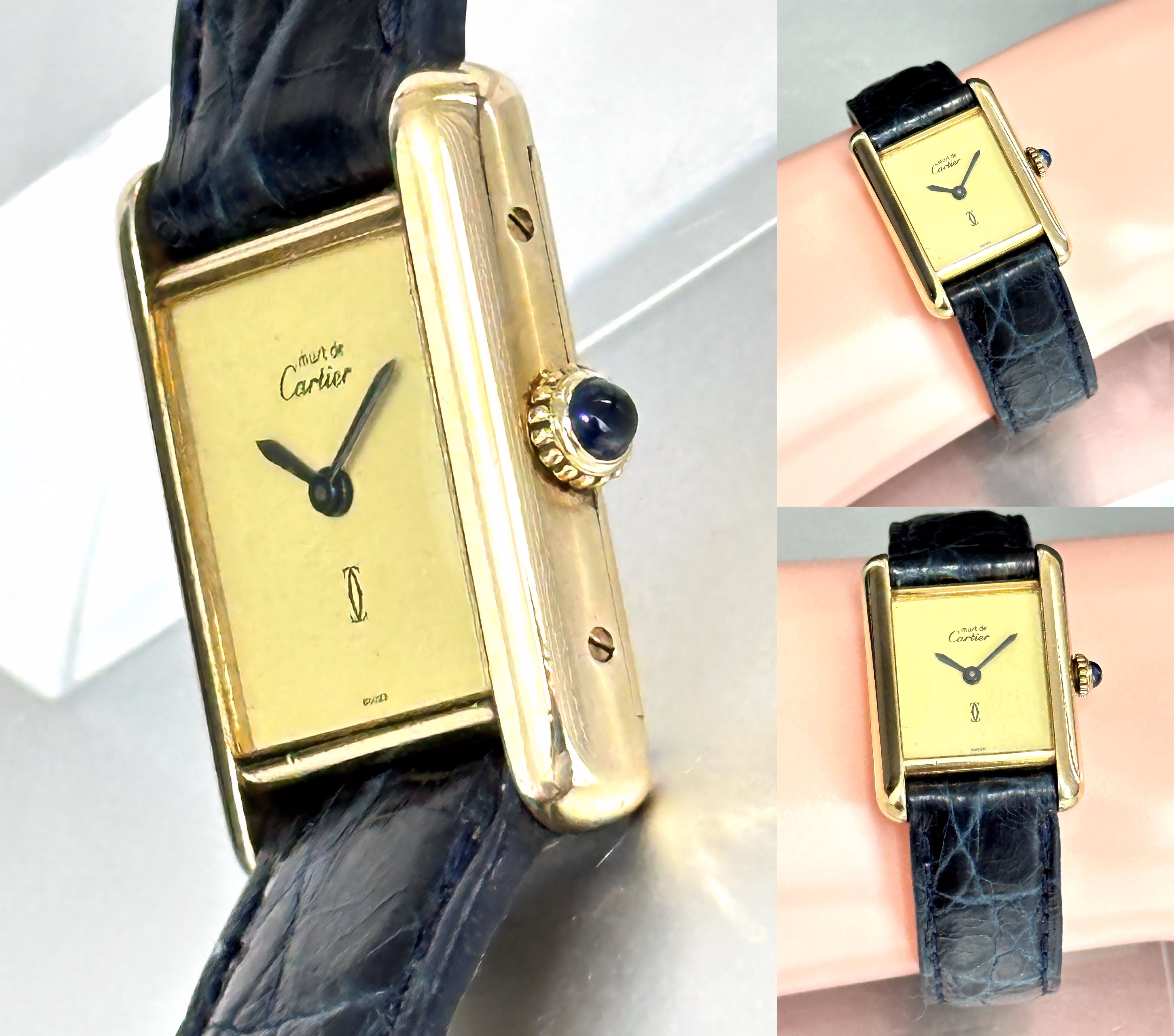 Cartier カルティエ TANK MUST WATCH SM カルティエ マストタンク ヴェルメイユ×925 手巻き 純正クロコレザーベルト ブラック&ブルー 純正尾錠