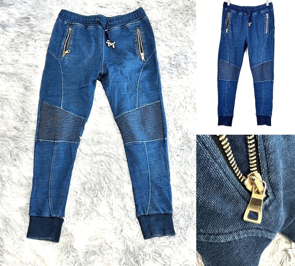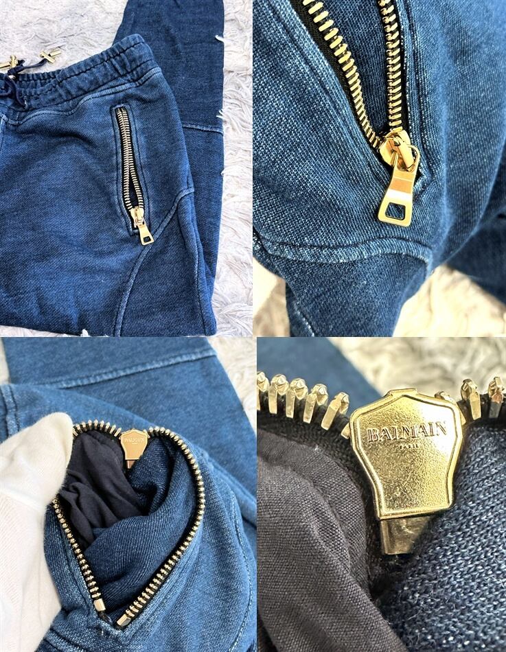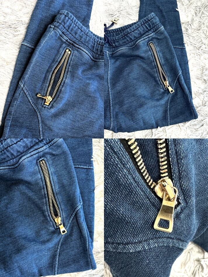 BALMAIN バルマン スウェット バイカー ジョガー パンツ インディゴブルー ゴールドジップ