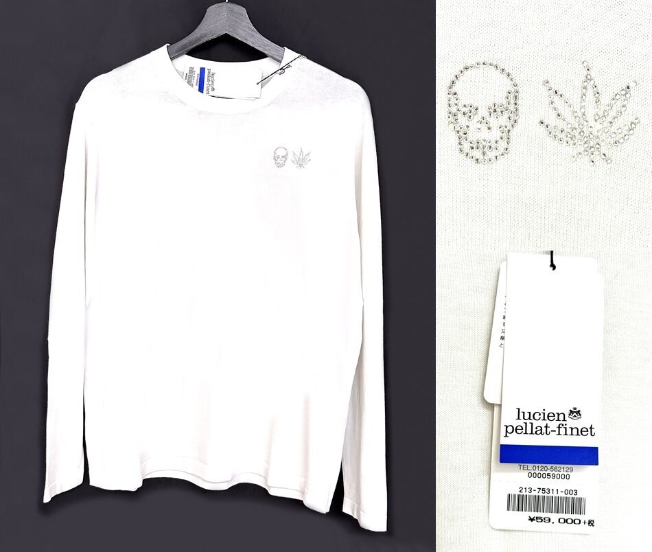 lucien pellat-finet ルシアンペラフィネ コットン ニット スワロ スカル ロング 長袖 シャツ 白 メンズ S