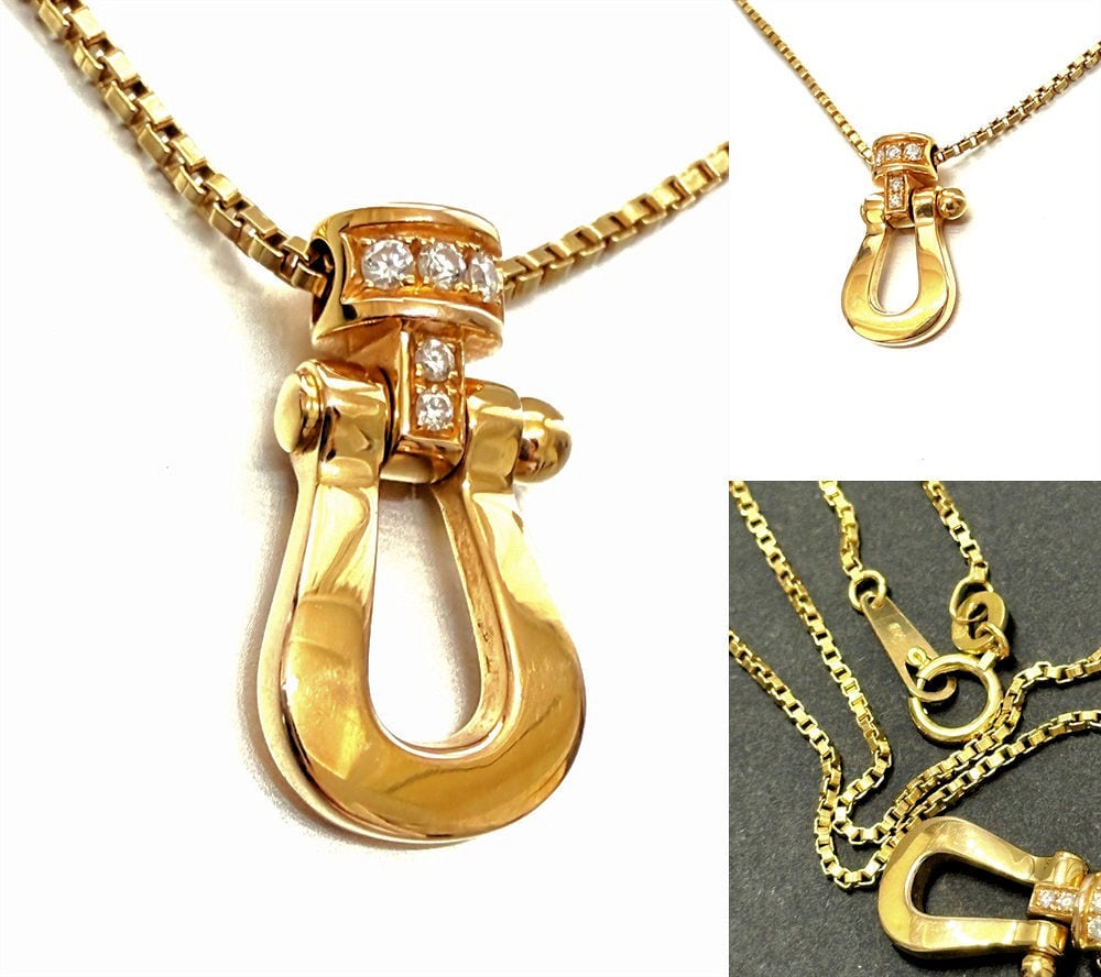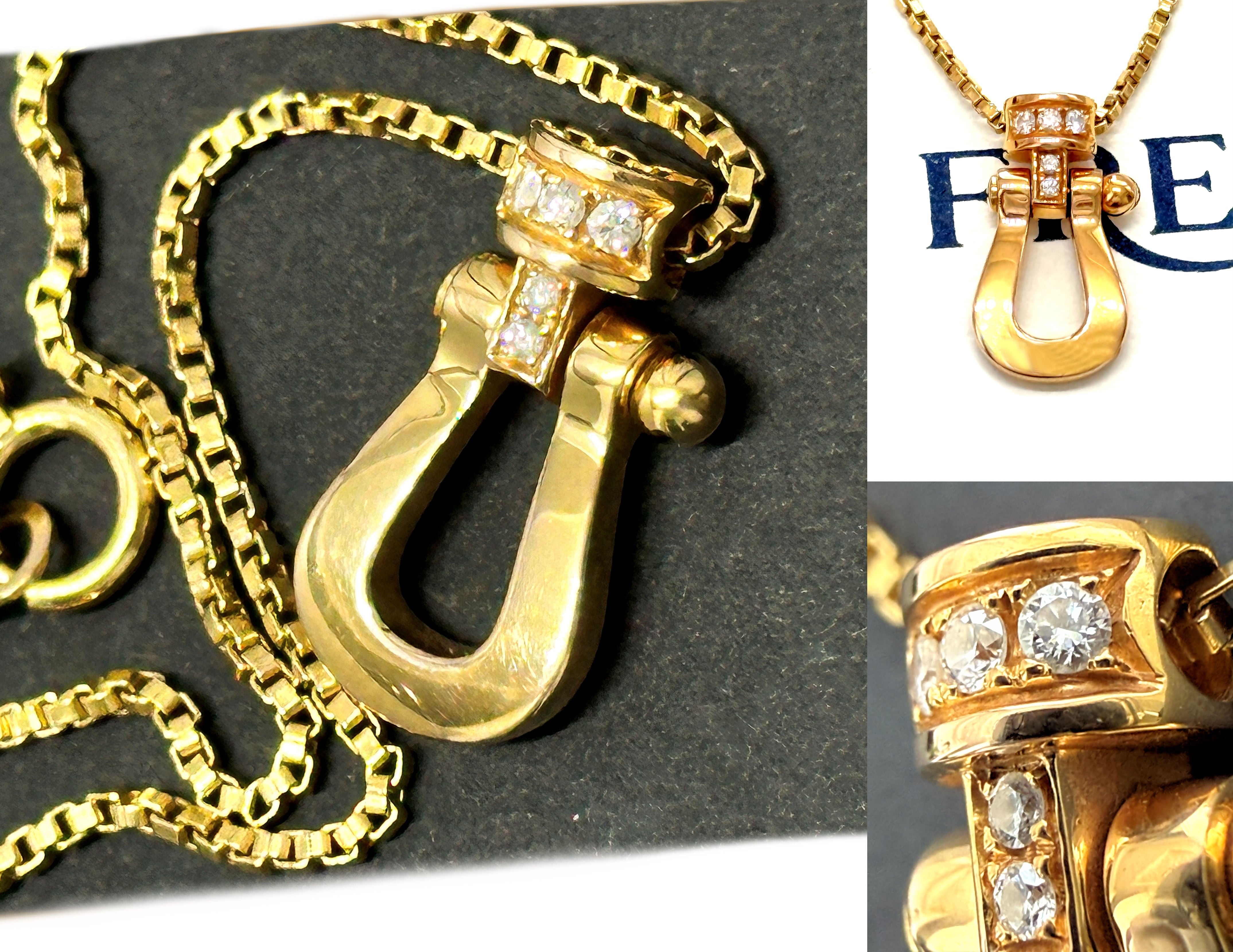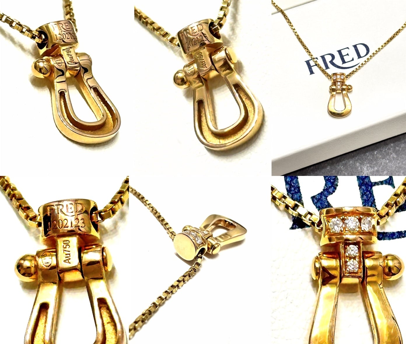 美品 FRED フレッド Force フォース10 ダイヤモンド ペンダント ネックレス K18 YG ケース 男女 ベネチアン イエローゴールド