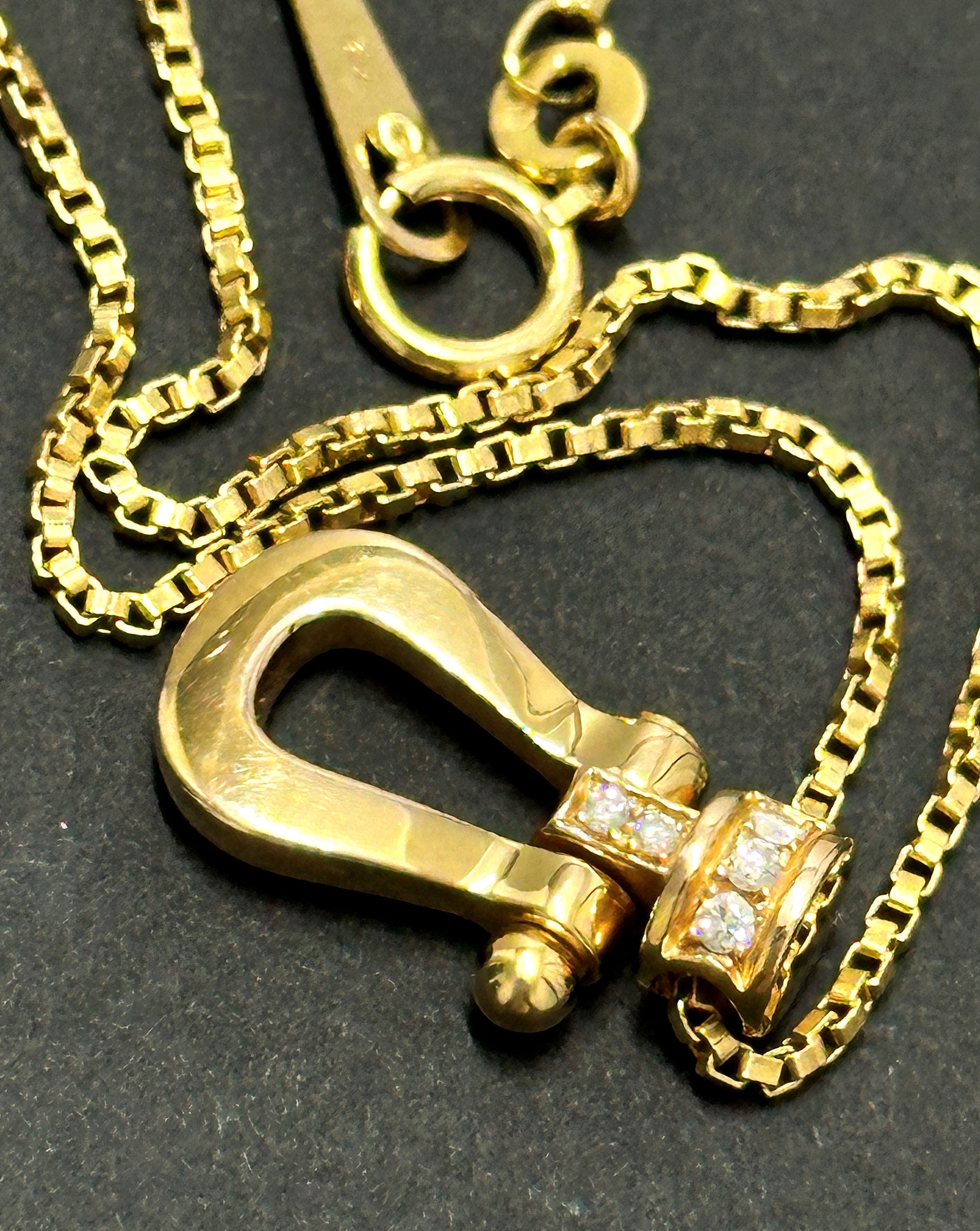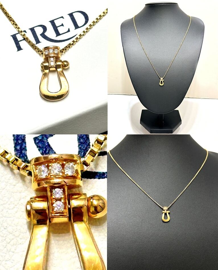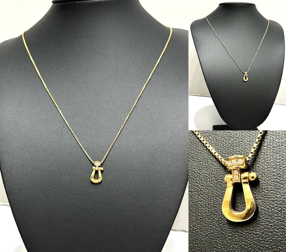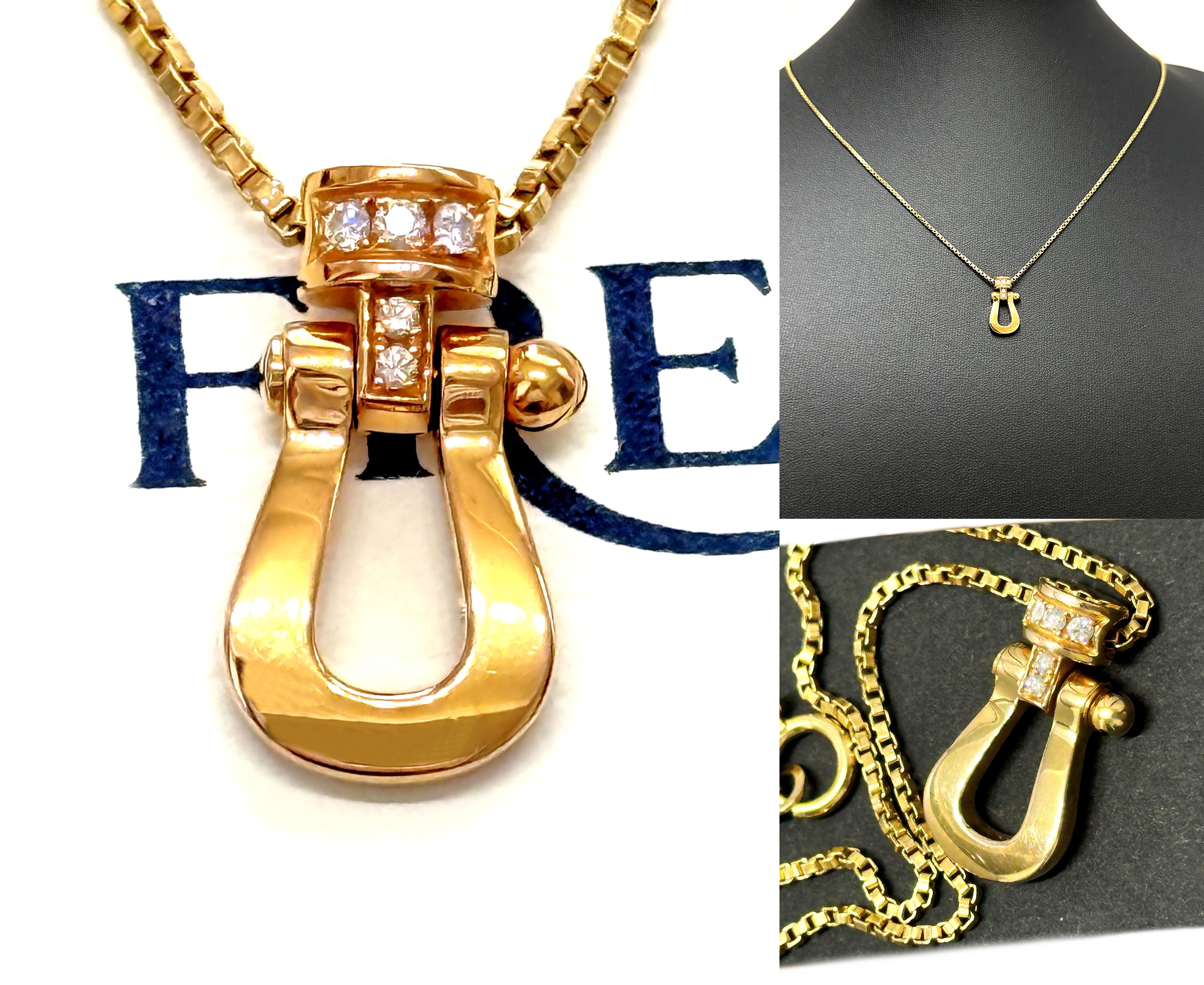 美品 FRED フレッド Force フォース10 ダイヤモンド ペンダント ネックレス K18 YG ケース 男女 ベネチアン イエローゴールド
