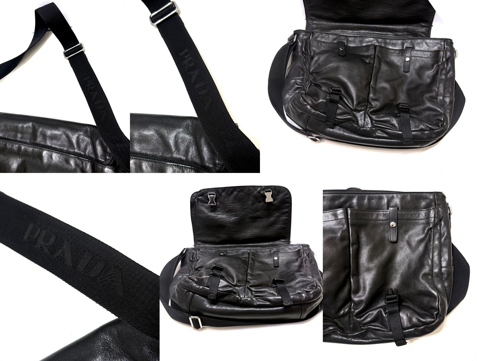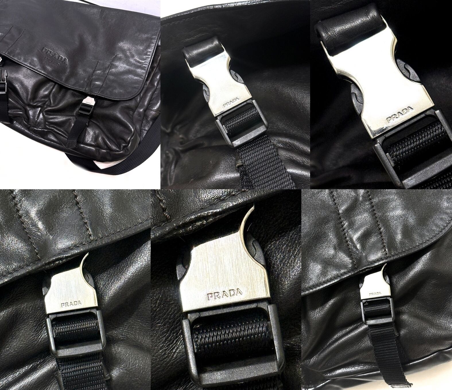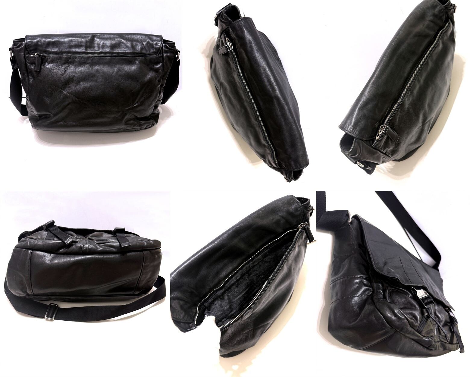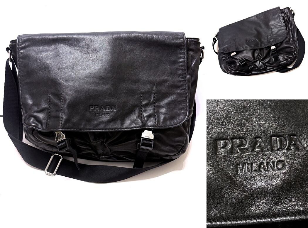 PRADA プラダ ラム レザー メッセンジャー ショルダー バッグ ハイエンド ロゴ エンボス ブラック メンズ