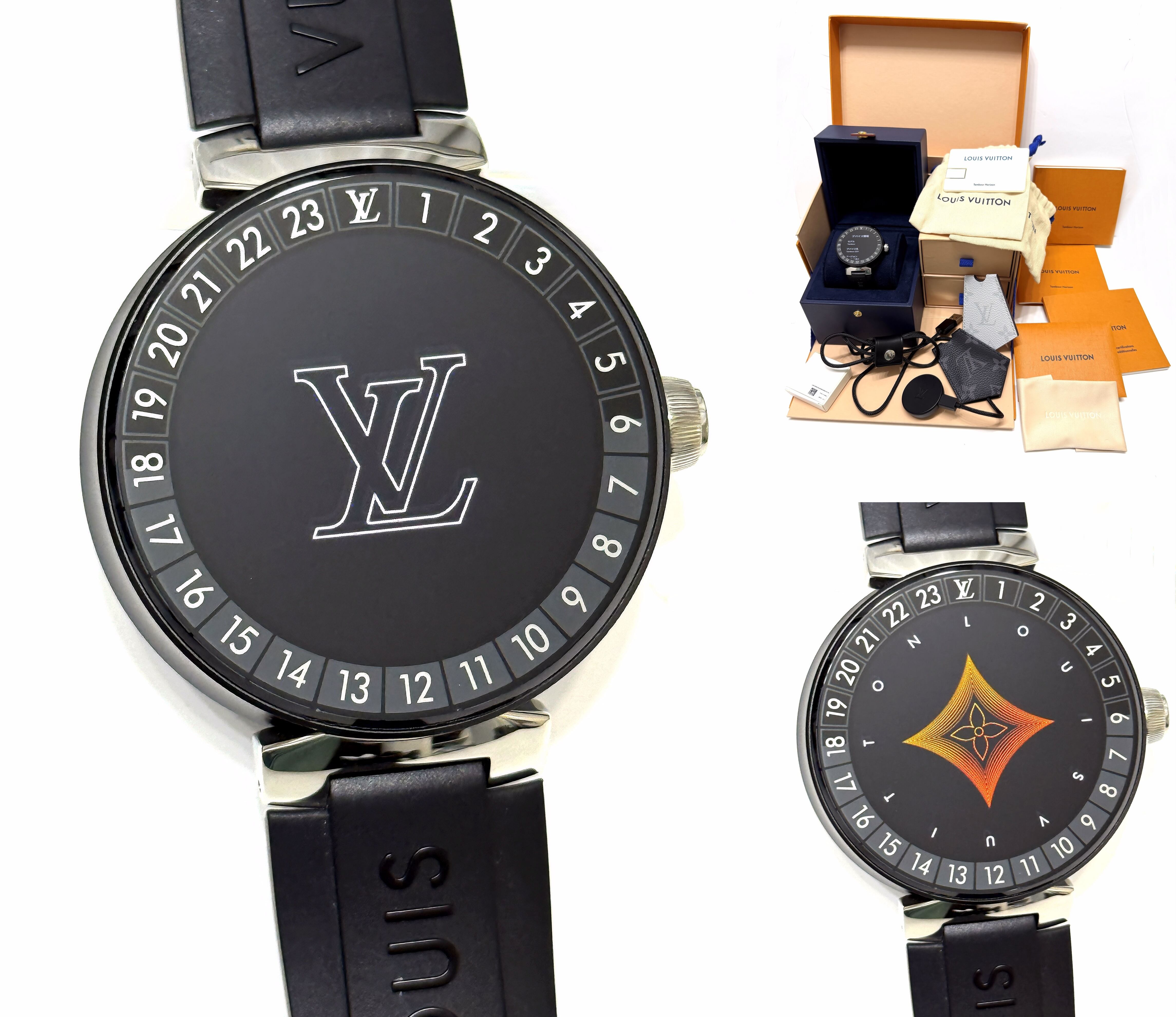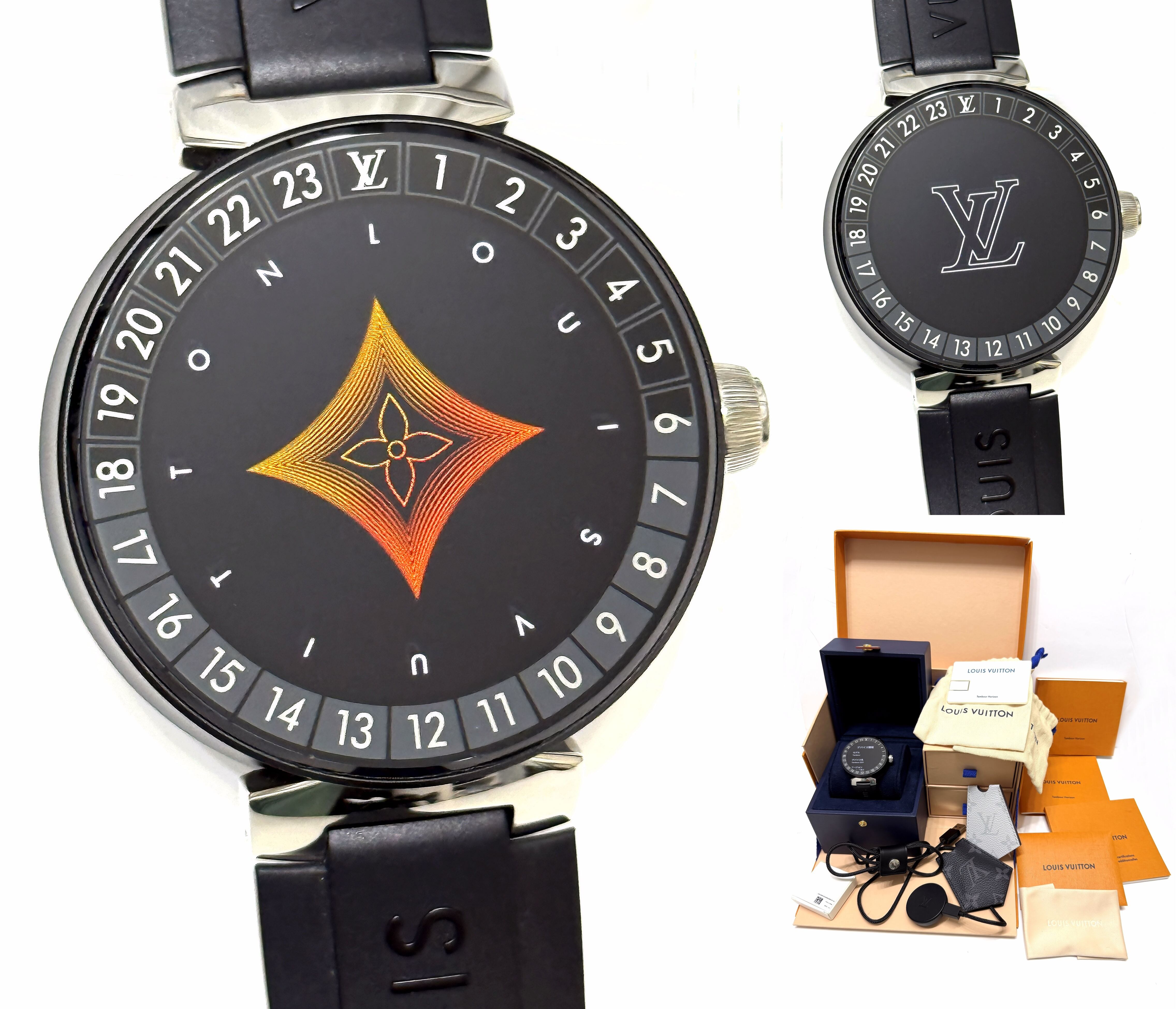 完備 LOUIS VUITTON ルイヴィトン タンブール ホライゾン V2 オールブラック ギャラ付き 時計 スマートウォッチ 黒 メンズ