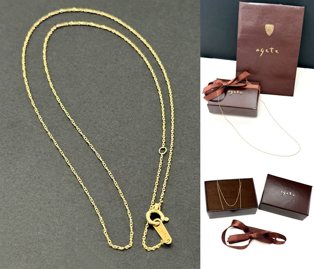 agete アガット K18 ネックレス チェーン 45cm YG イエローゴールド ショッパー ケース セット 完売