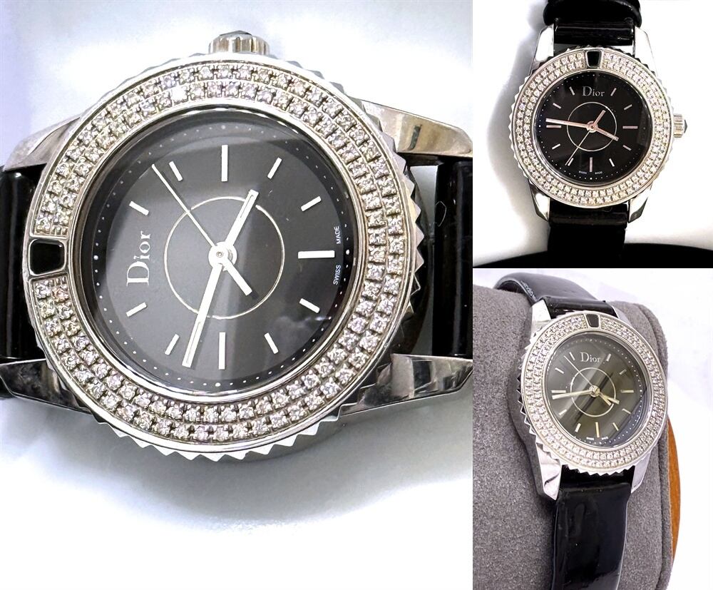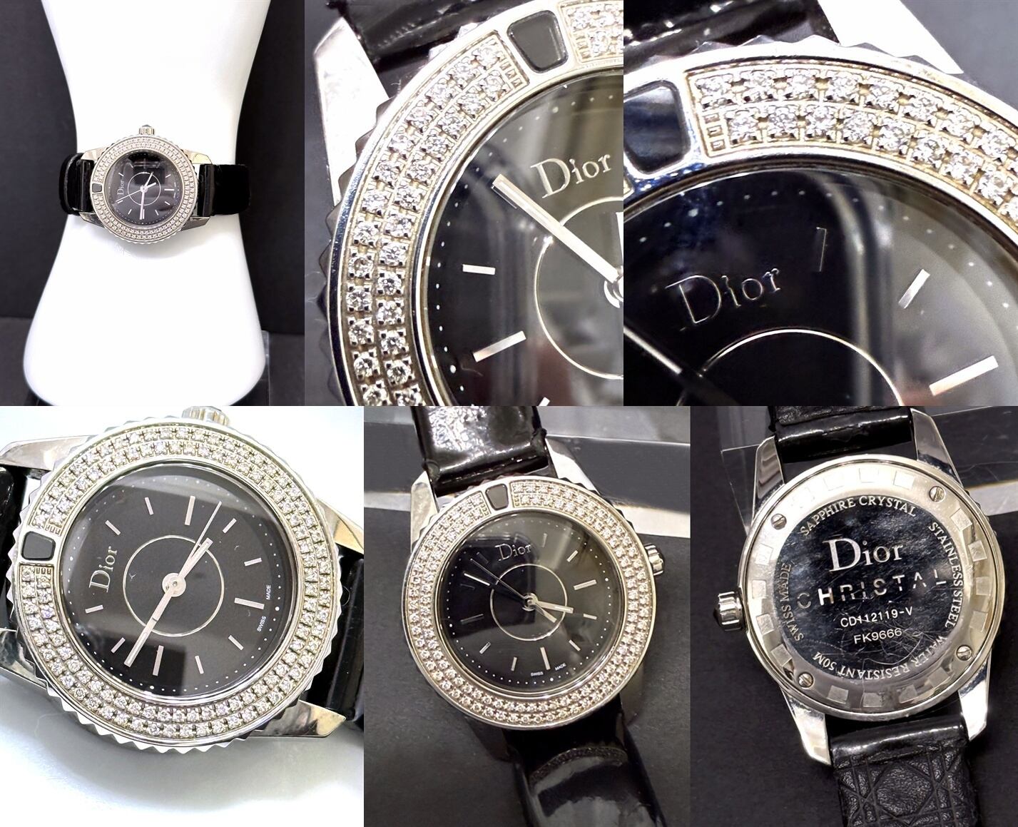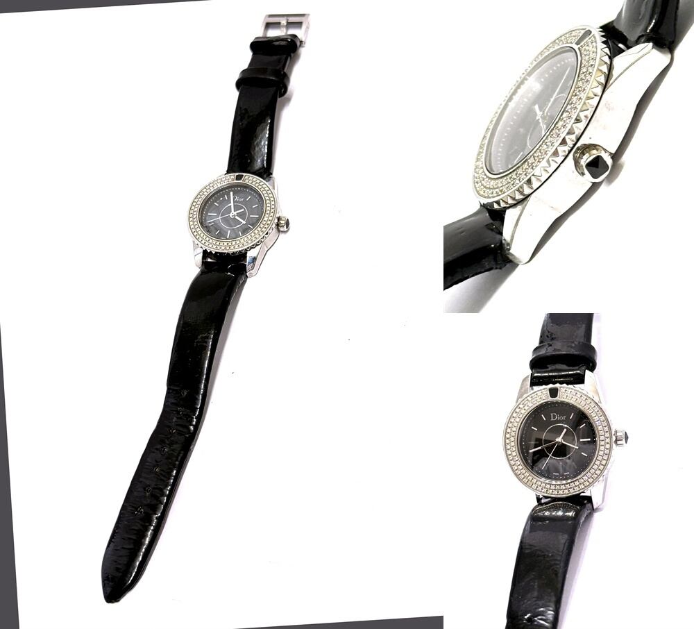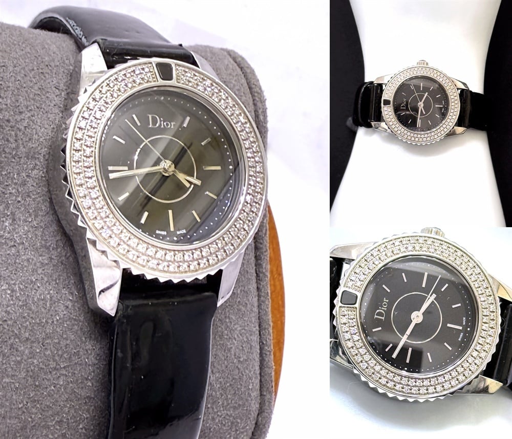 Christian Dior クリスチャンディオール クリスタル ダイヤモンド ウォッチ パヴェ ダイヤ ブラック 純正 時計