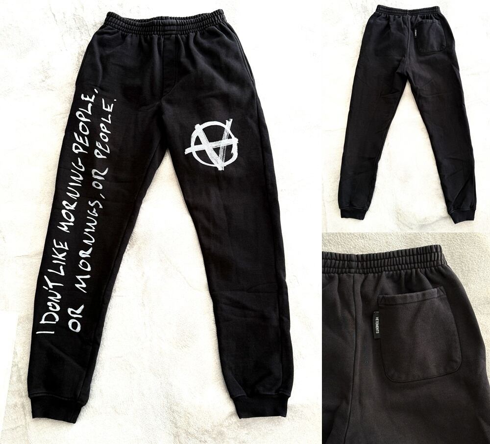 VETEMENTS ヴェトモン 19 2020 AW ANARCHY スウェットパンツ ブラック 起毛 アナーキー S メンズ NOIR 黒