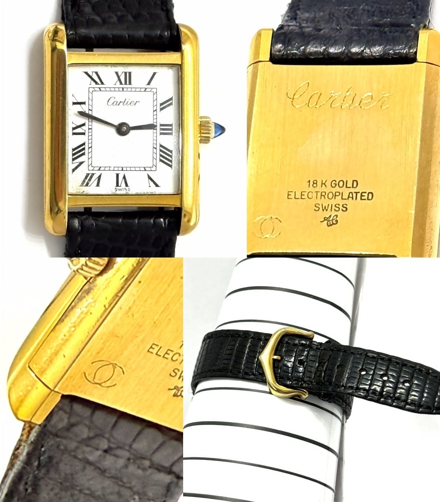ベルト内側にはカルティエ刻印と、18K GOLD ELECTROPLATED 刻印が入っております(金張り,ゴールドプレート)