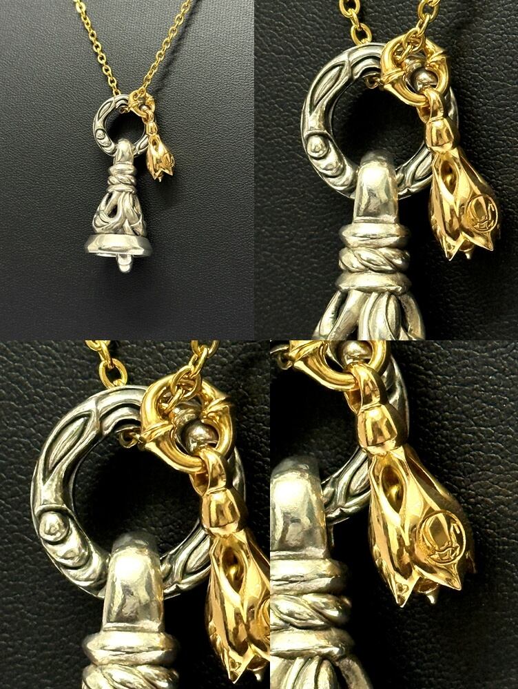 シルバーとゴールドのベルがとてもマッチしていて美しい輝きを放ち、上品なゴールドジュエリーとなっております。