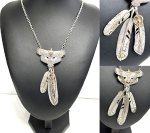 K18YGx 925 イーグル フェザー ペンダント ネックレス