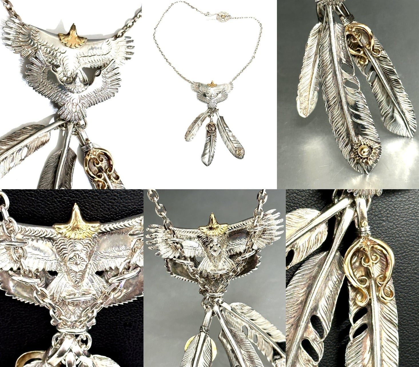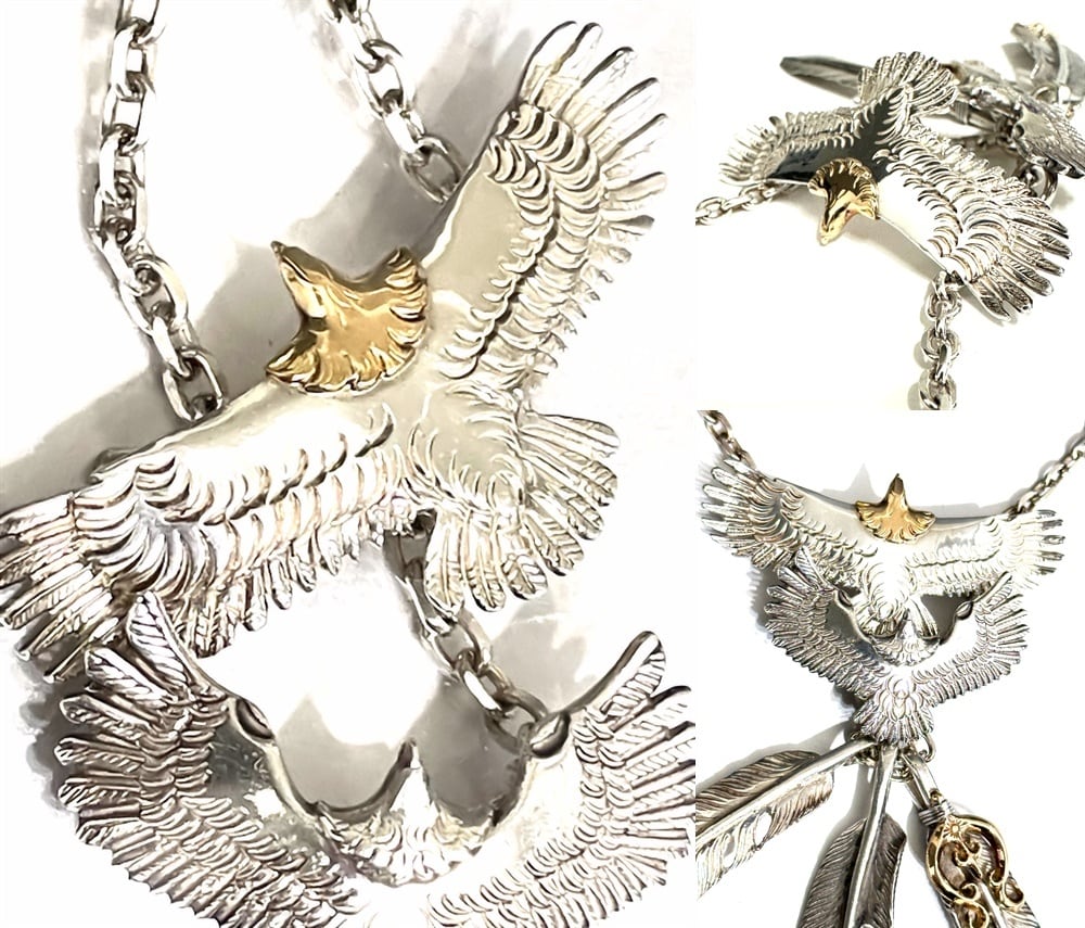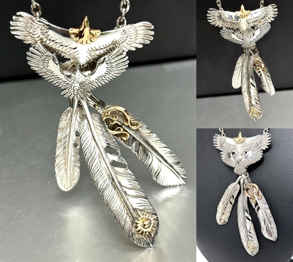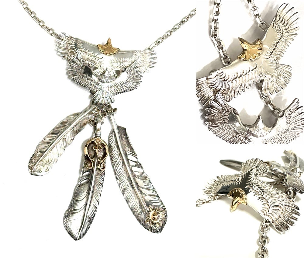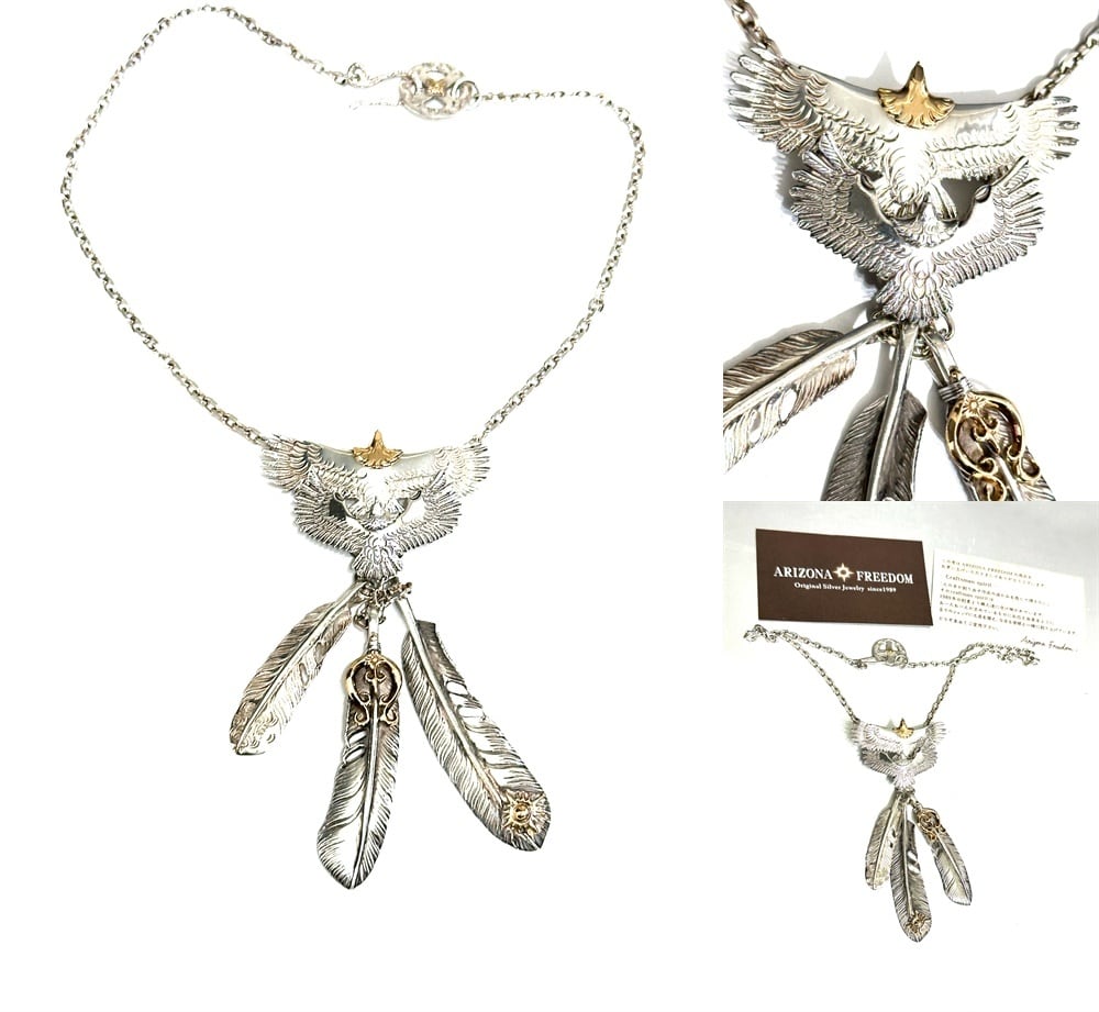 ARIZONA FREEDOM アリゾナフリーダム K18 x 925 イーグル フェザー ペンダント ネックレス 希少 セット 大 金 ゴールド シルバー 太陽神 頭金