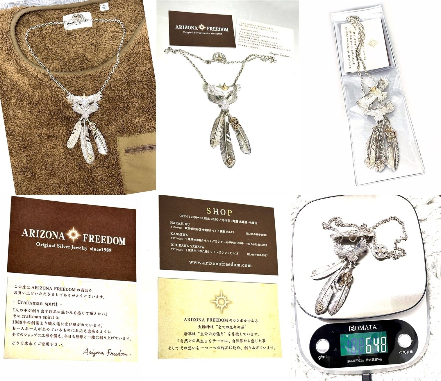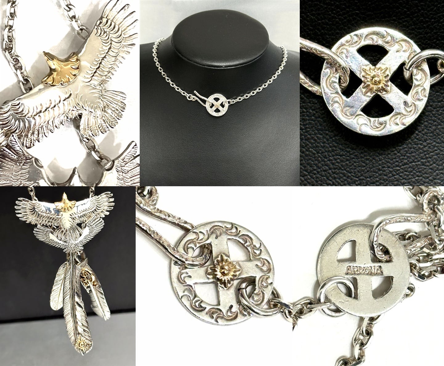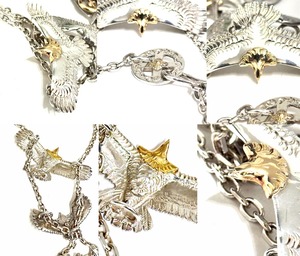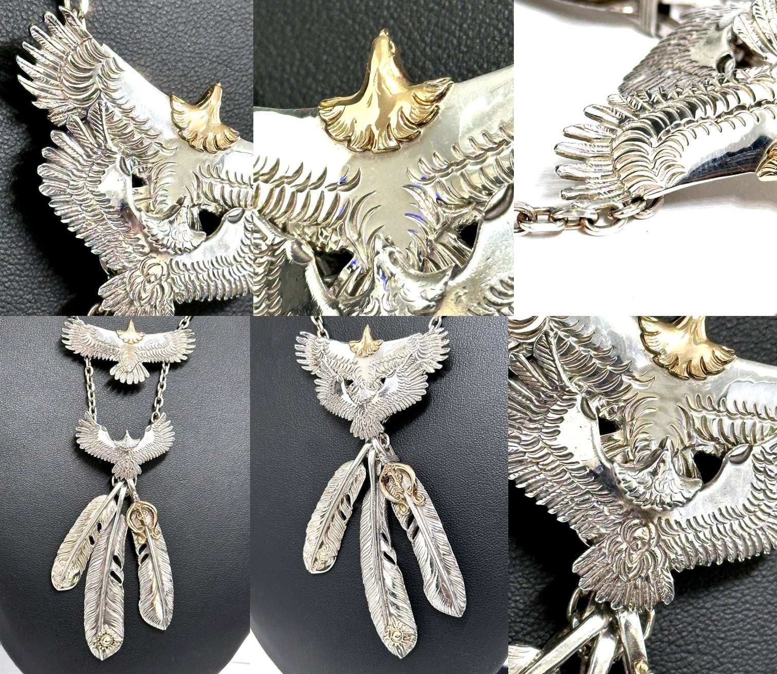 ARIZONA FREEDOM アリゾナフリーダム K18 x 925 イーグル フェザー ペンダント ネックレス 希少 セット 大 金 ゴールド シルバー 太陽神 頭金