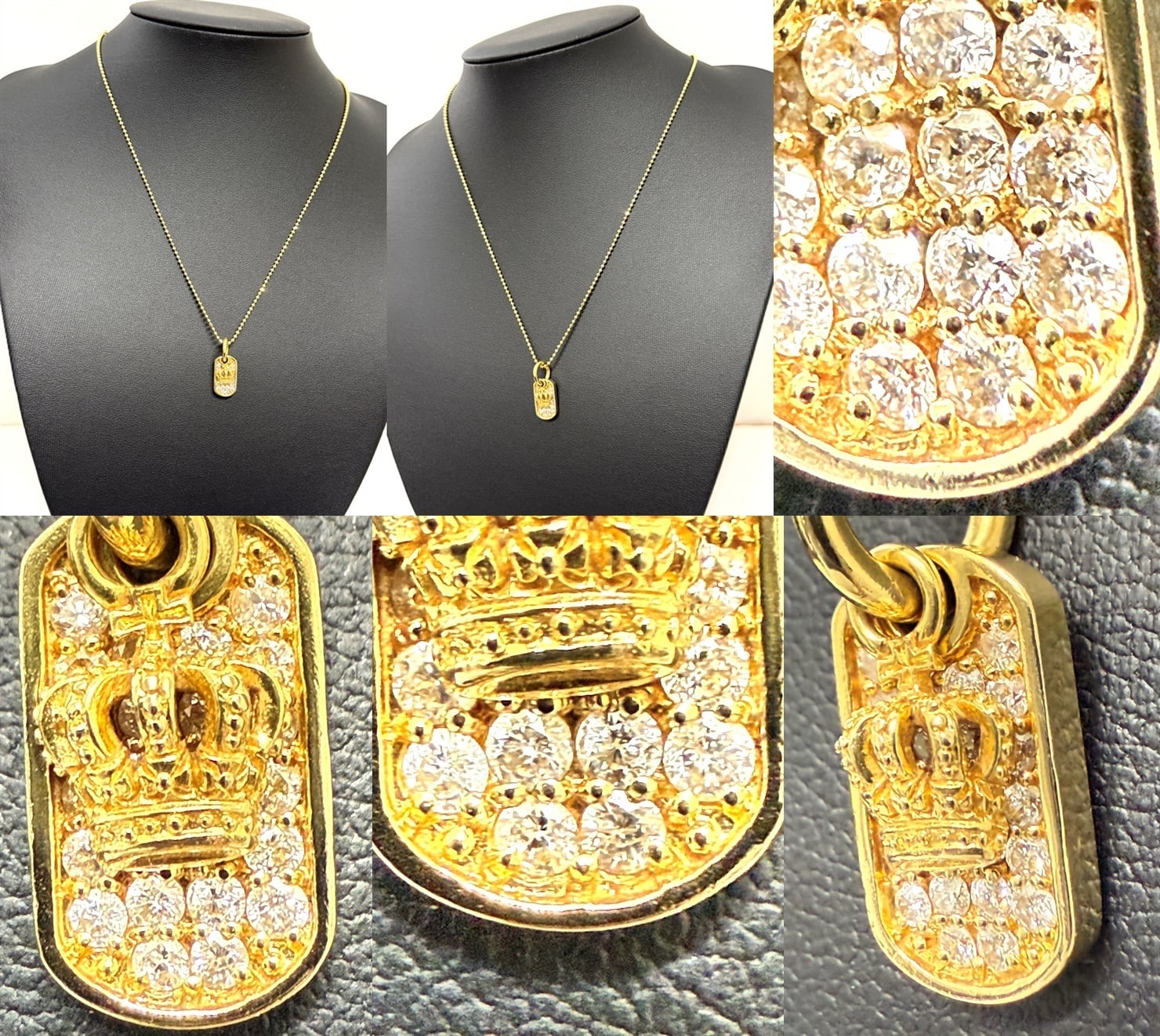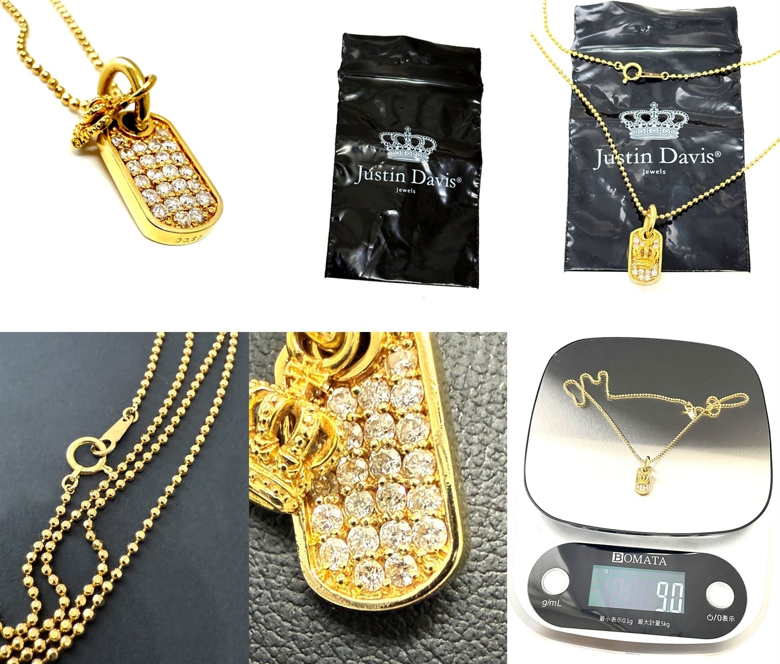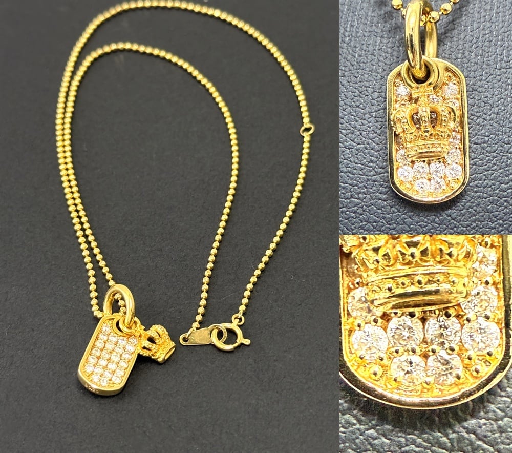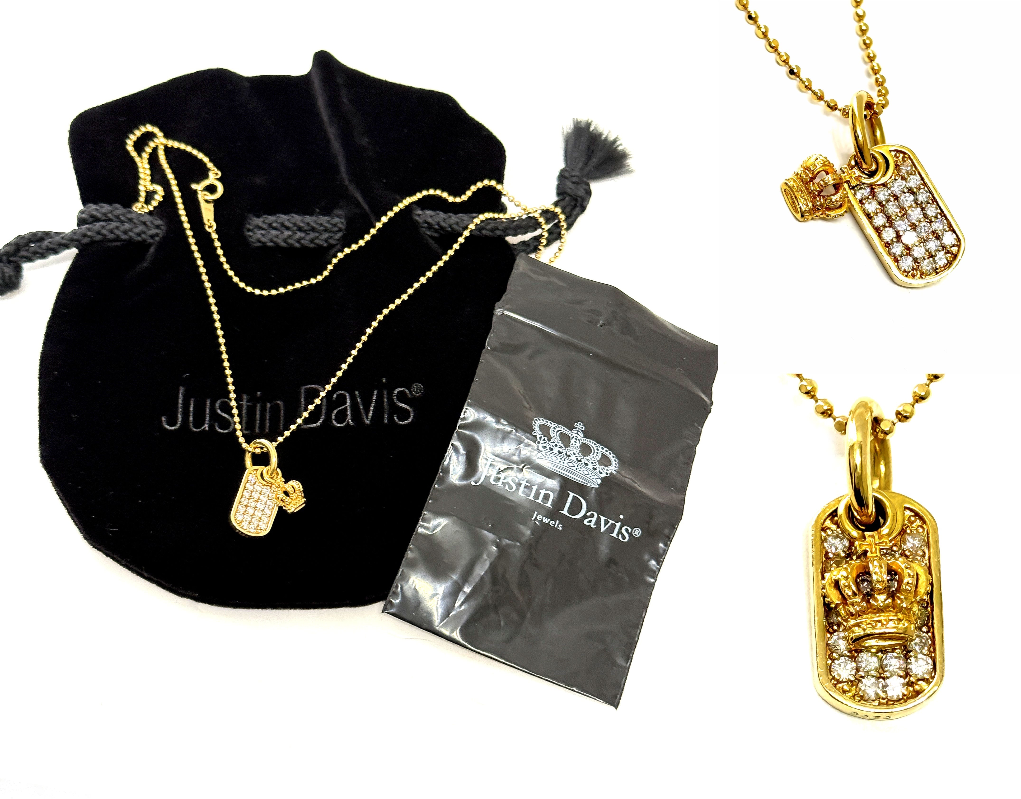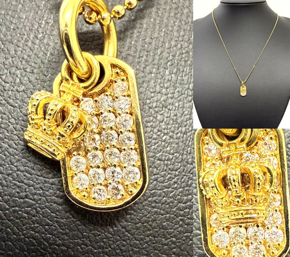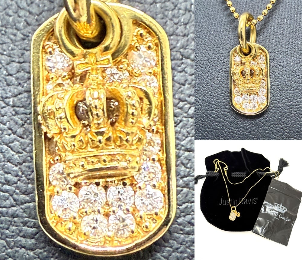 Justin Davis ジャスティンデイビス K18 YG クラウン パヴェ ダイヤモンド プレート ペンダント 0.50ct ネックレス ドッグタグ