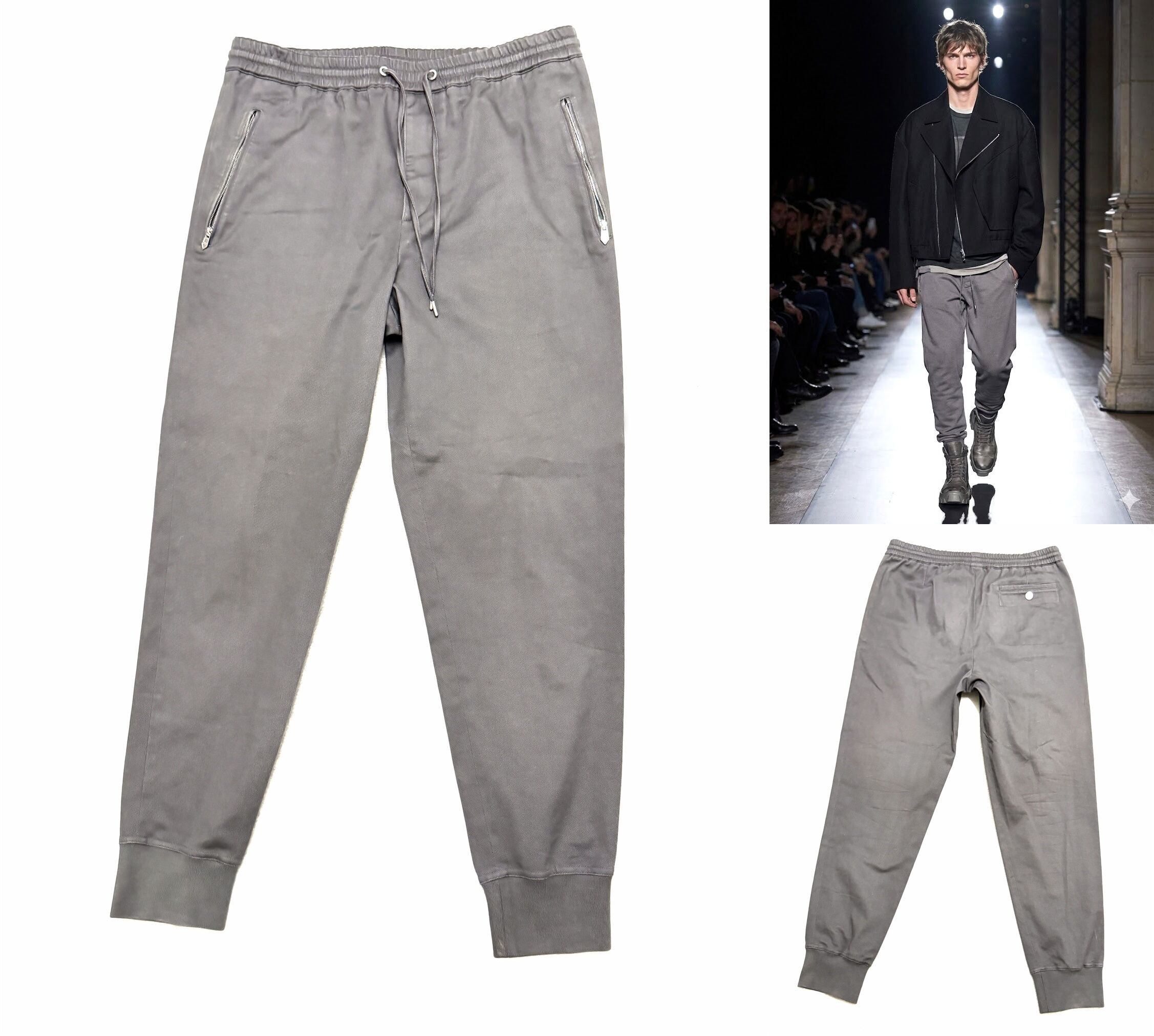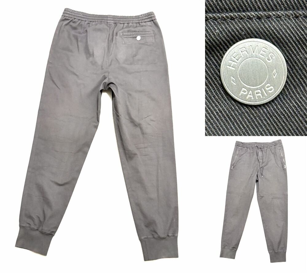 HERMES エルメス ジップ セリエボタン ジョガーパンツ 44 L メンズ グレー コットン イージーパンツ 希少 レア