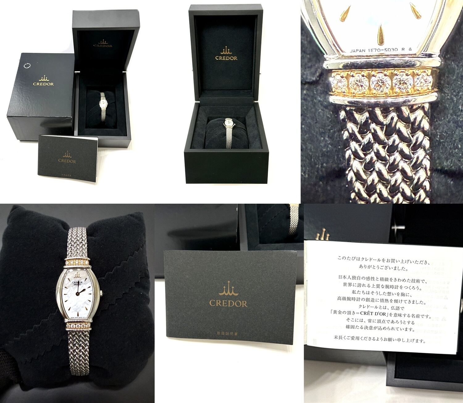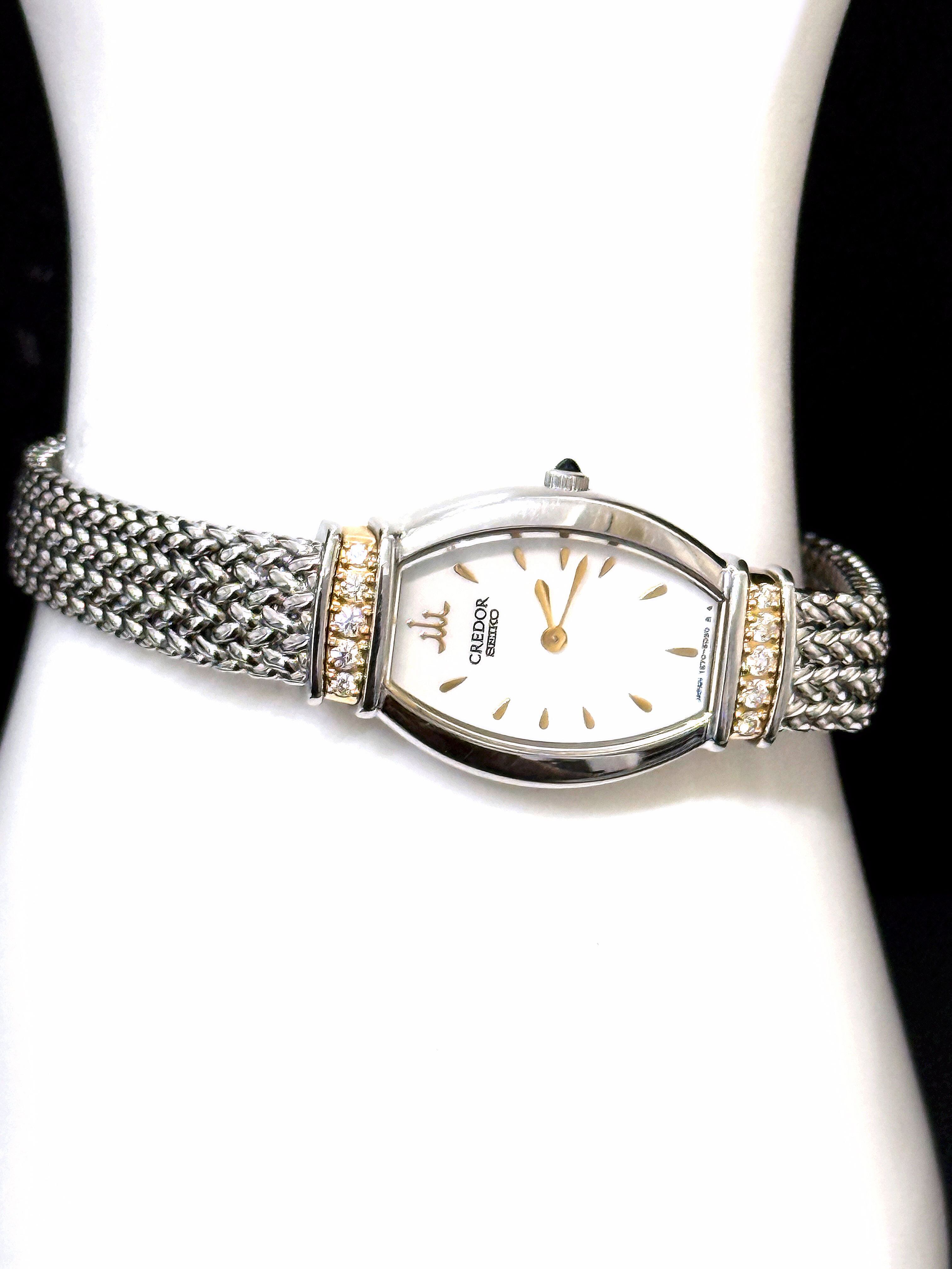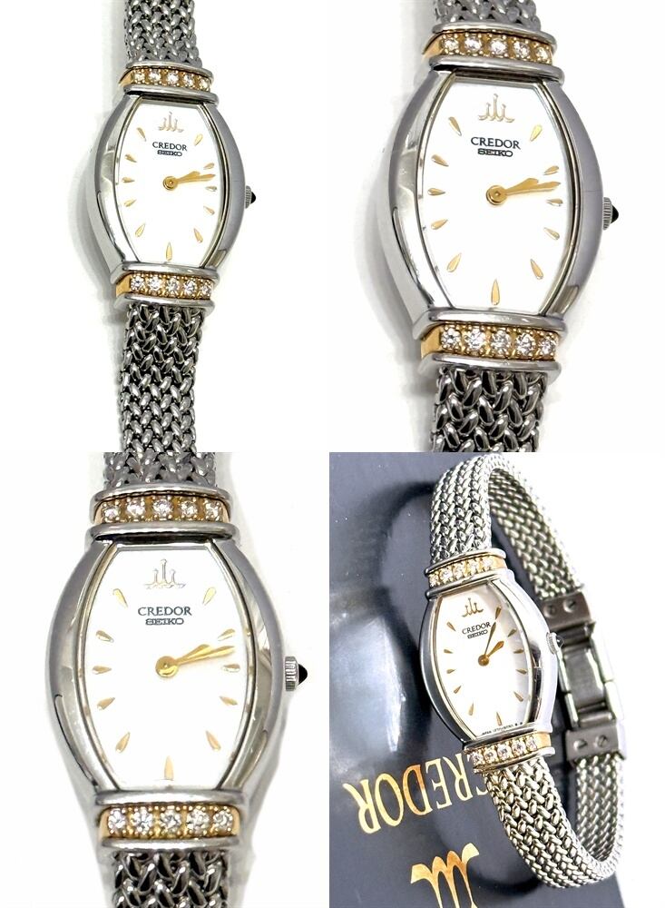 SEIKO セイコー CREDOR クレドール 18KT ホワイトシェル パヴェ ダイヤモンド K18 YG 時計 ダイヤ 10P ケース 取扱説明書