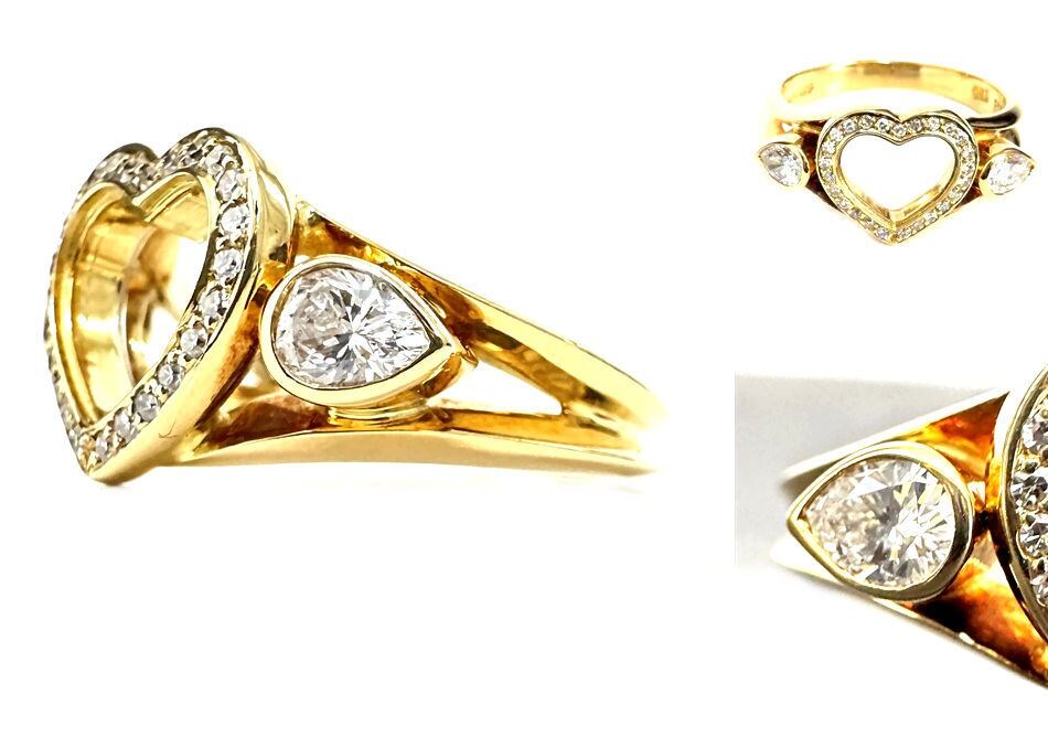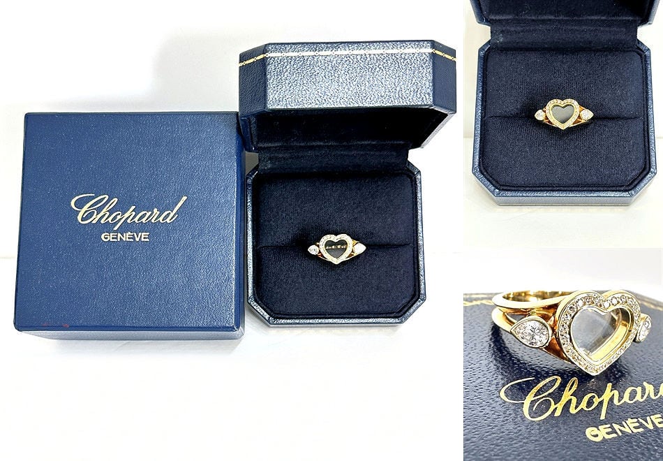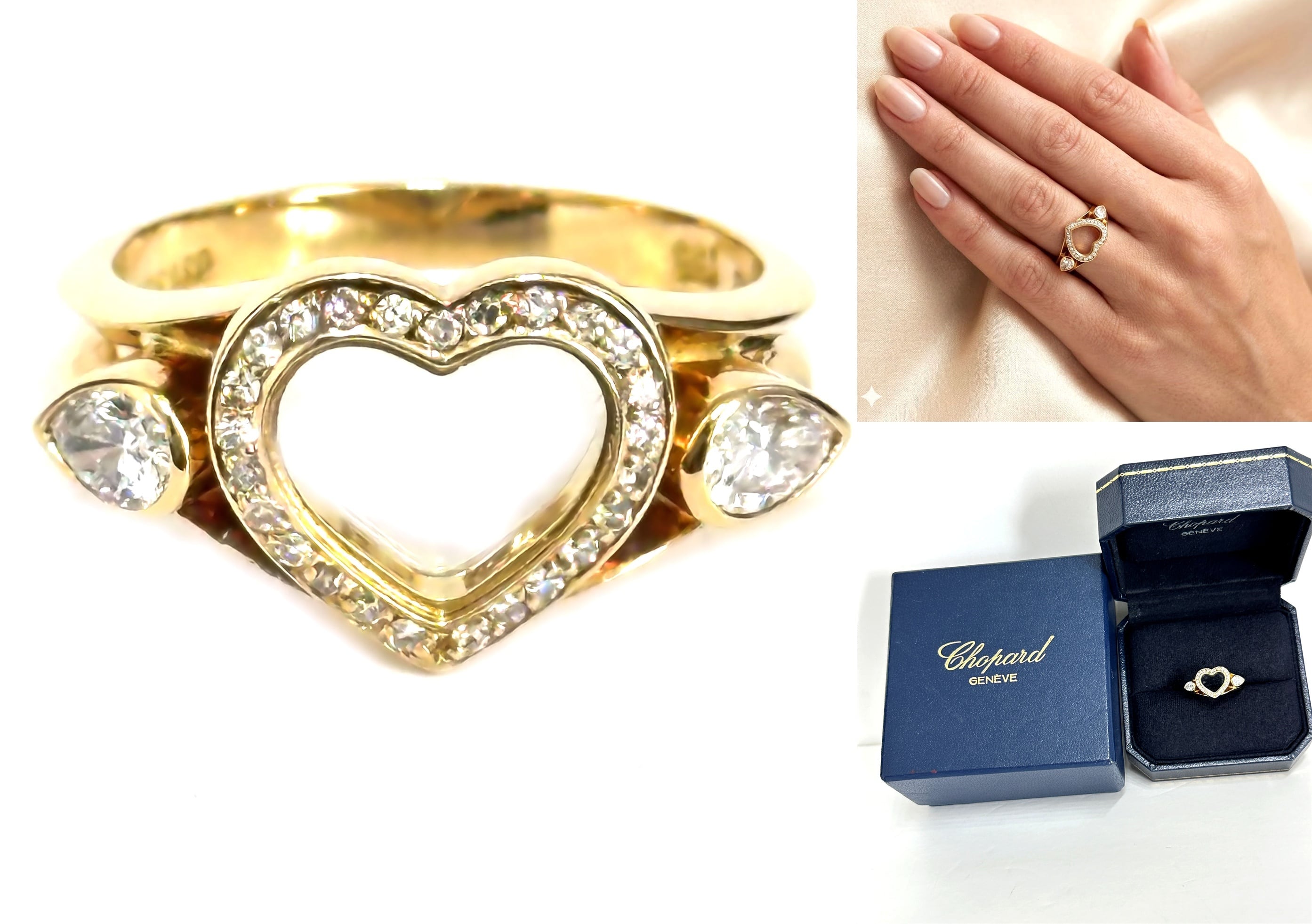 Chopard ショパール K18YG ハッピーダイヤモンド ペアシェイプ ダイヤ リング イエローゴールド 指輪 パヴェ 12.5号 ケース