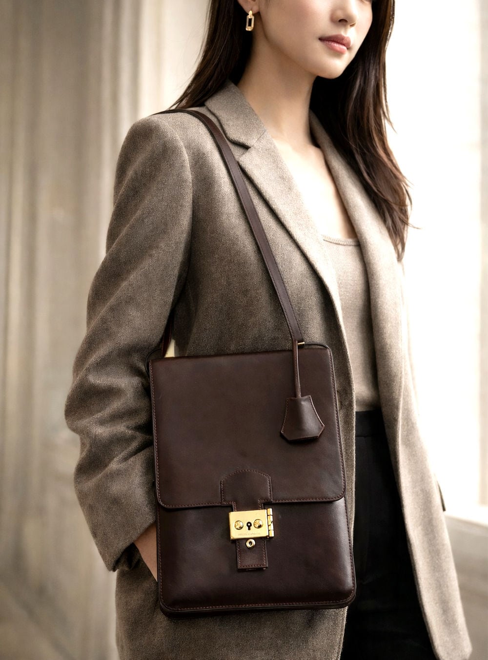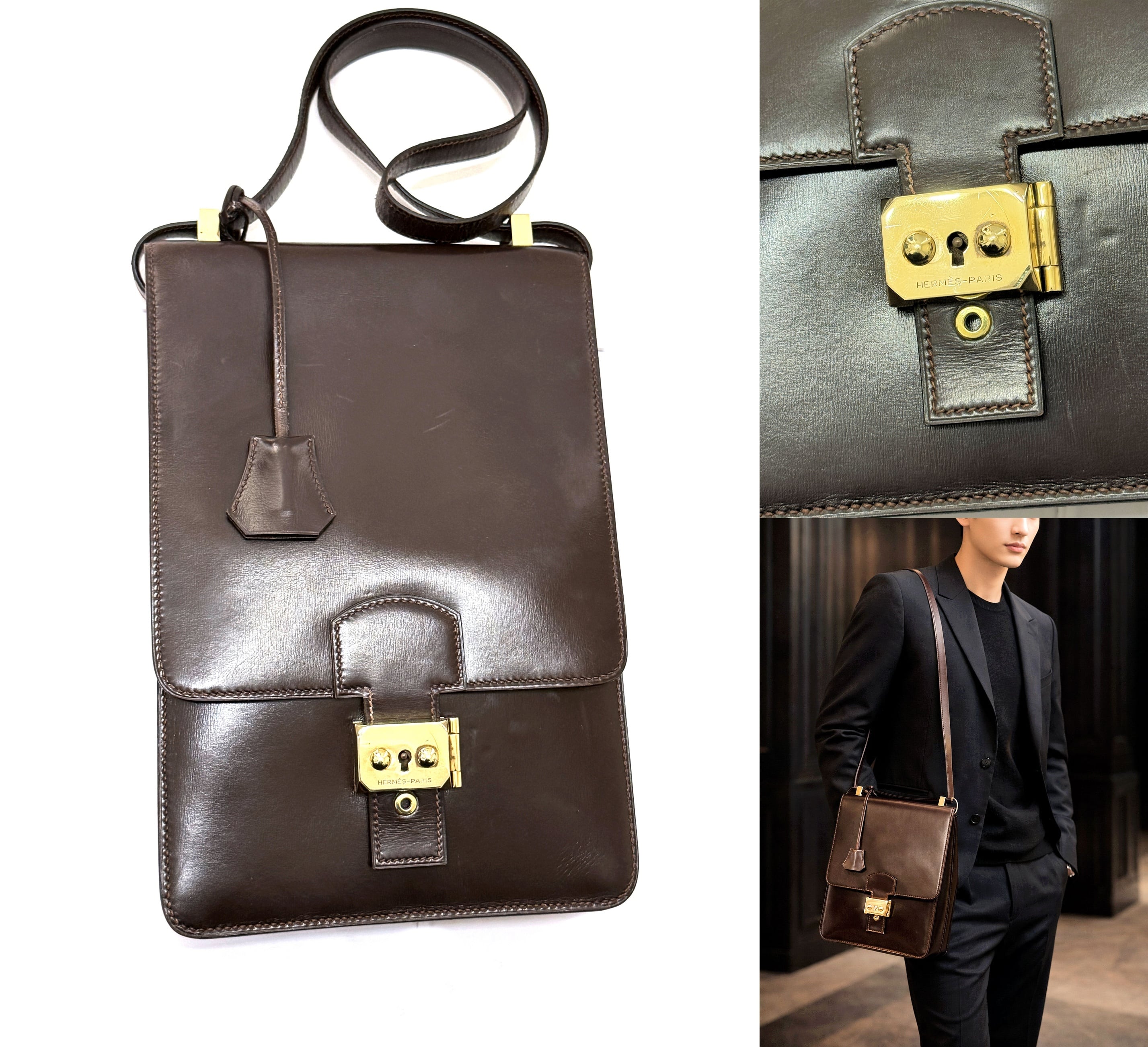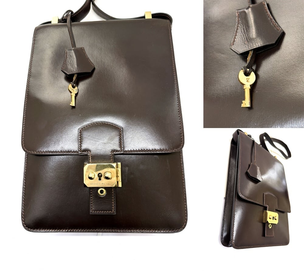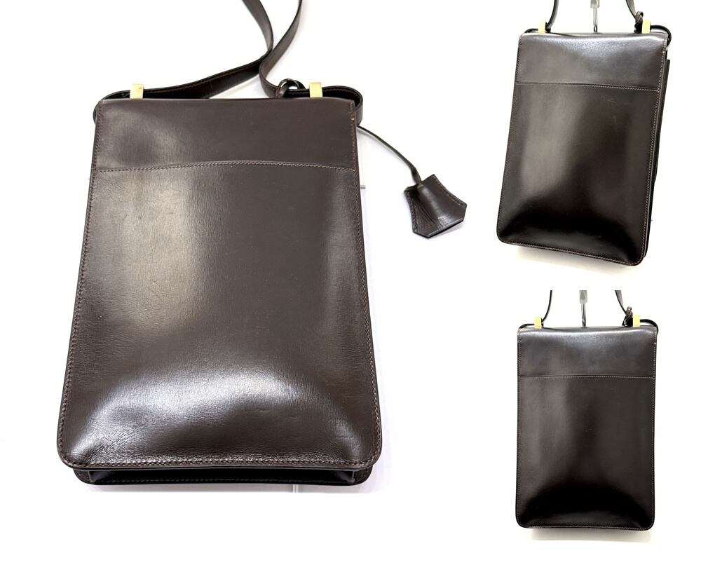 HERMES エルメス サック ア デペッシュ DPLG ボックスカーフ レザー ショルダーバッグ ショコラ ダークブラウン キー 男女