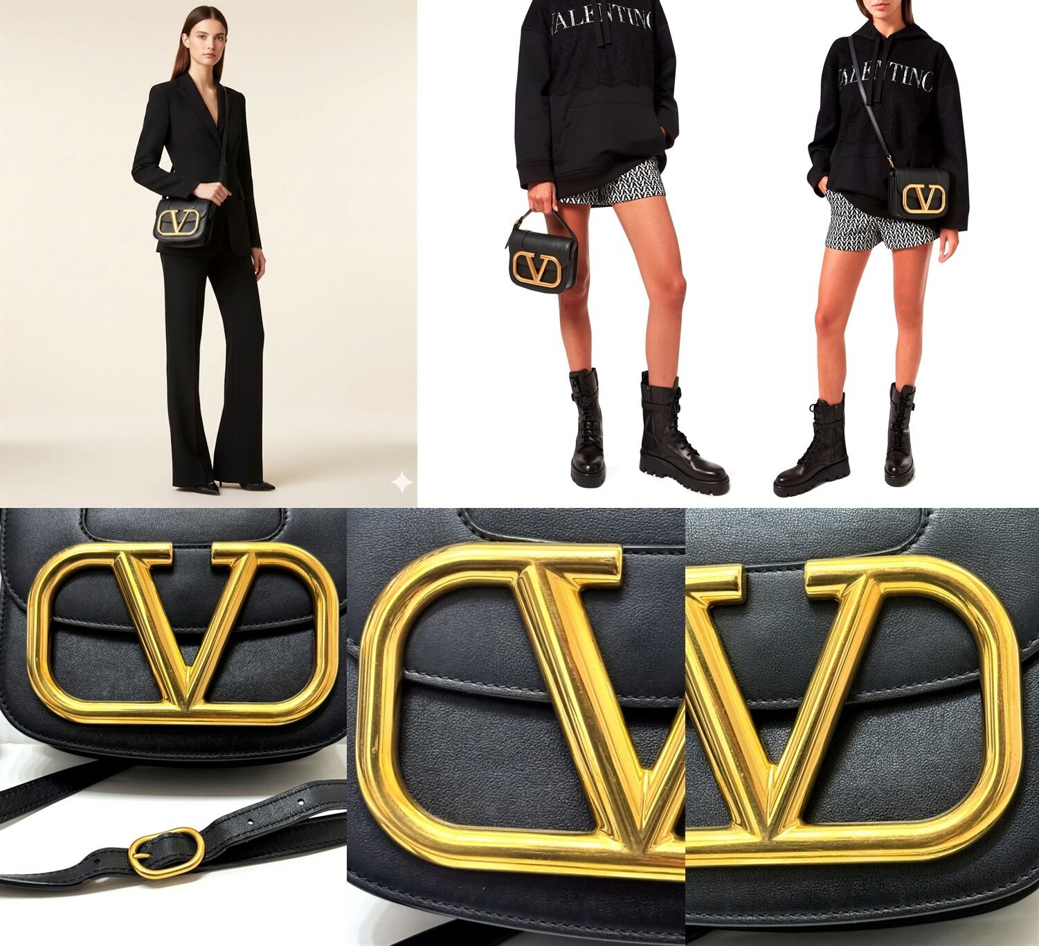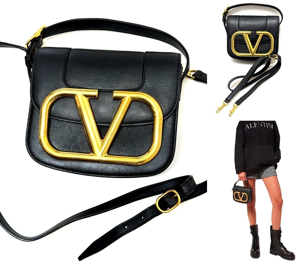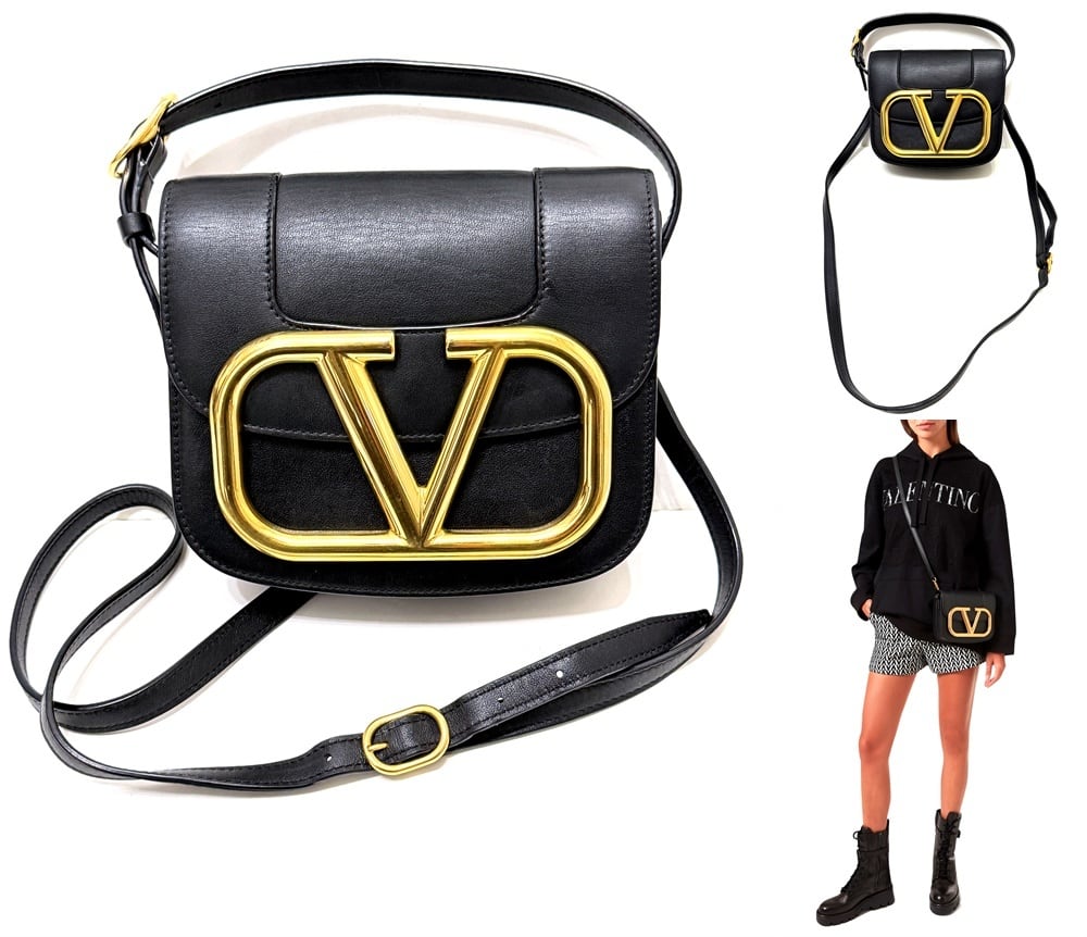 VALENTINO GARAVANI ヴァレンティノ スーパーVEE ショルダーバッグ スモール V アイコン ハンドバッグ 2way ブラック 黒 ミニ Supervee Small Top Handle Shoulder Bag in Calfskin