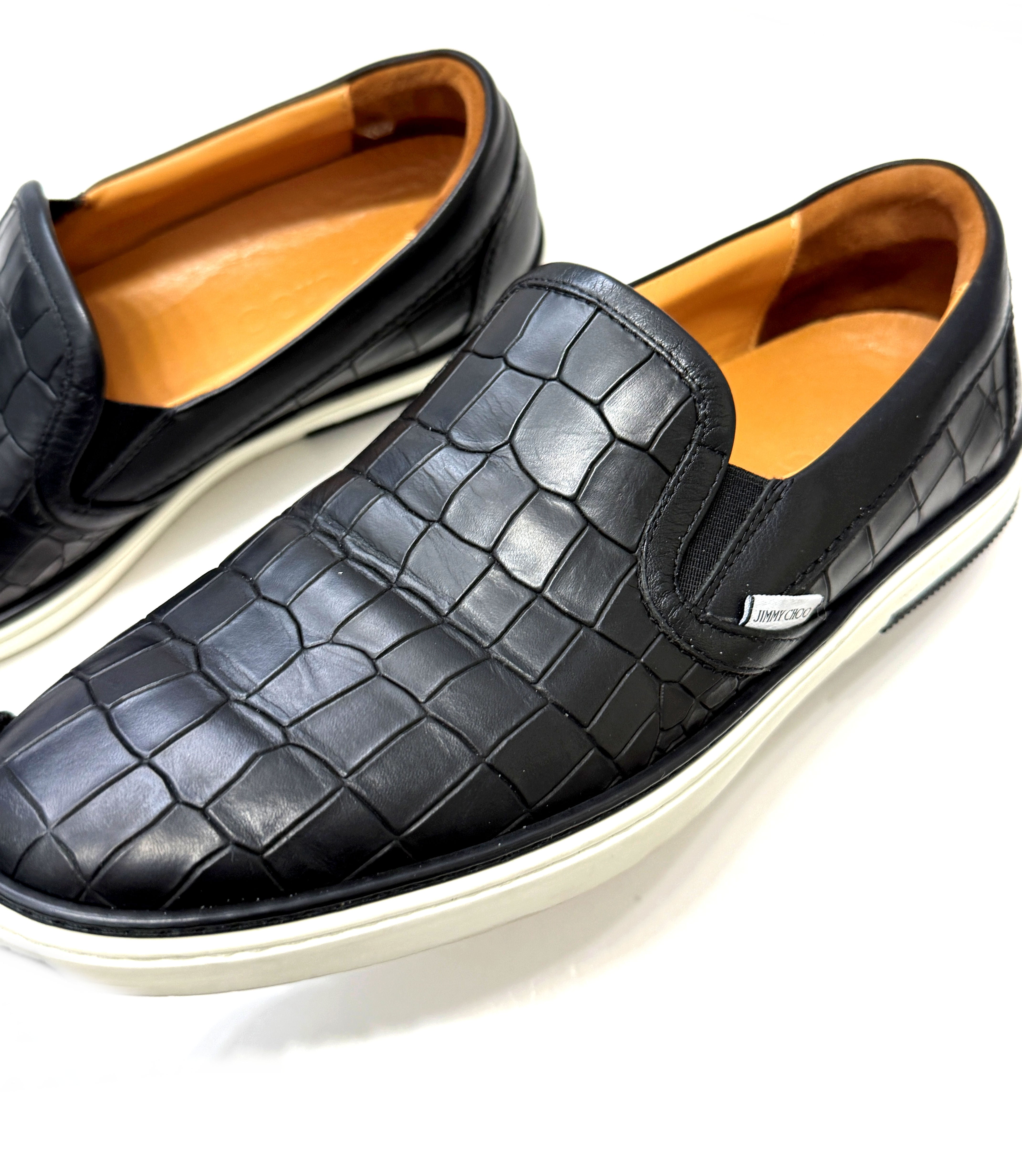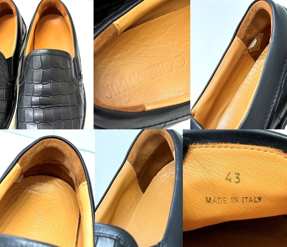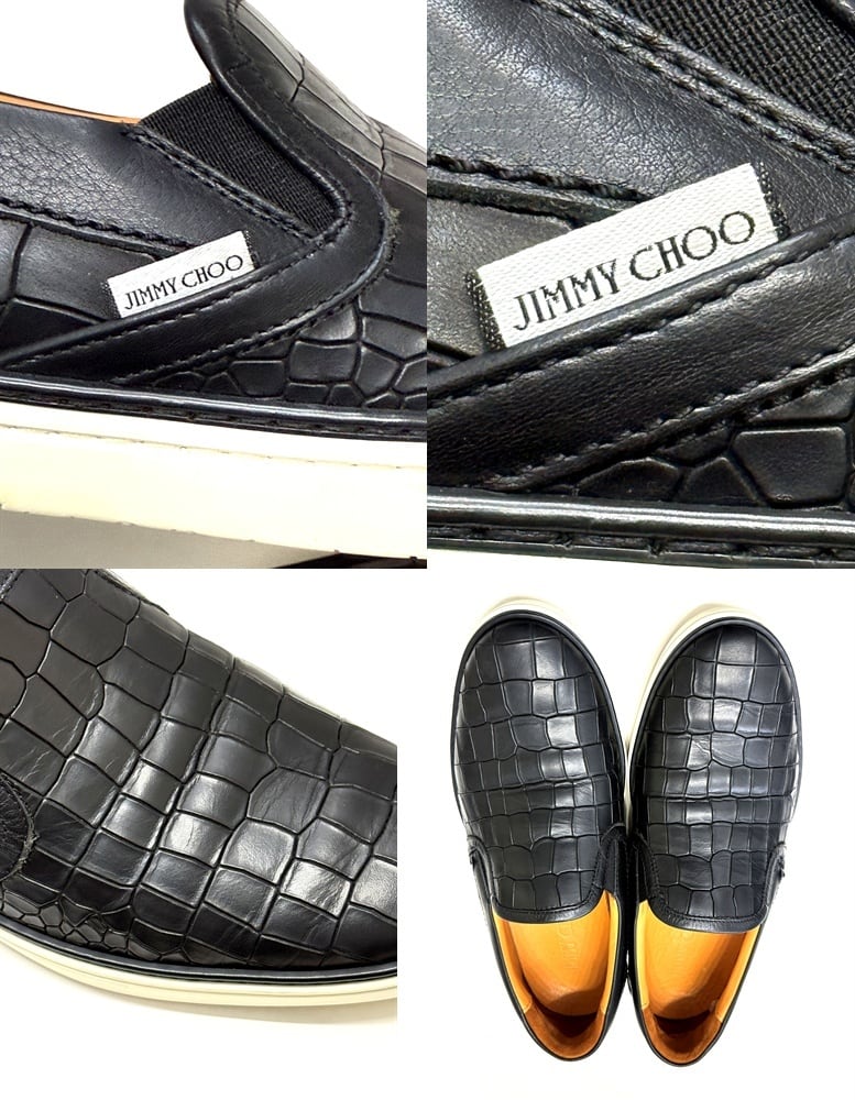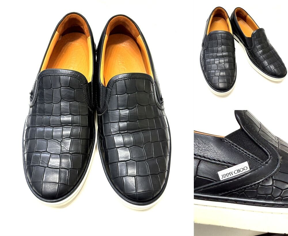JIMMY CHOO ジミーチュウ GROVE クロコ レザー エンボス スリッポン ブラック 43 28cm メンズ 黒 シューズ 靴