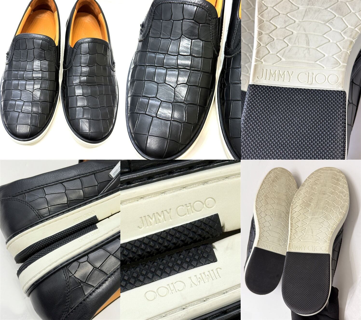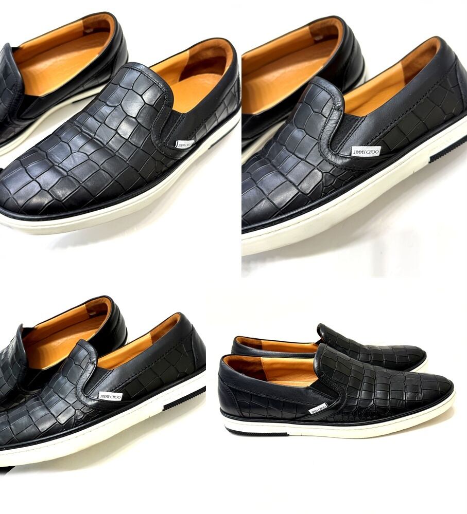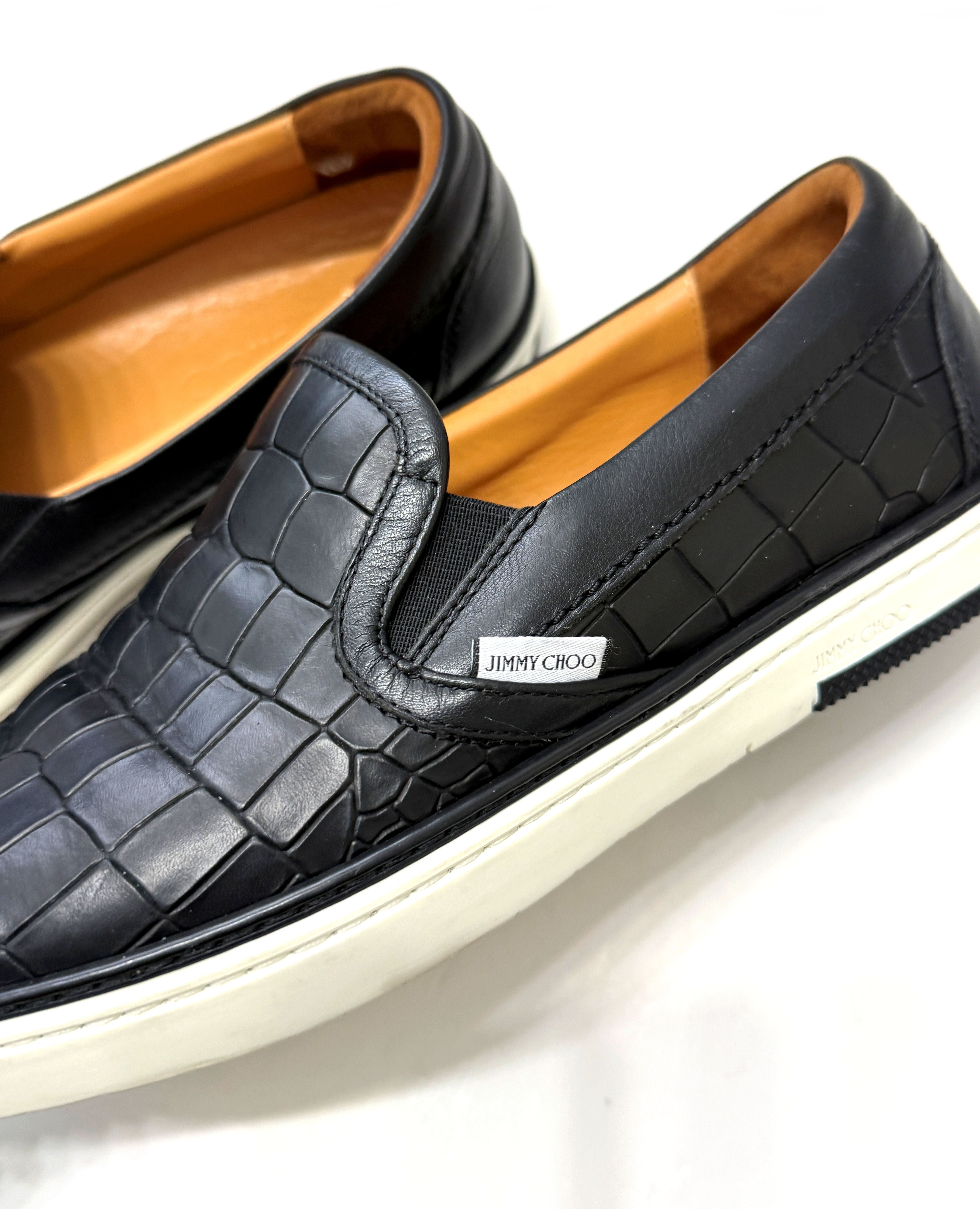 JIMMY CHOO ジミーチュウ GROVE クロコ レザー エンボス スリッポン ブラック 43 28cm メンズ 黒 シューズ 靴