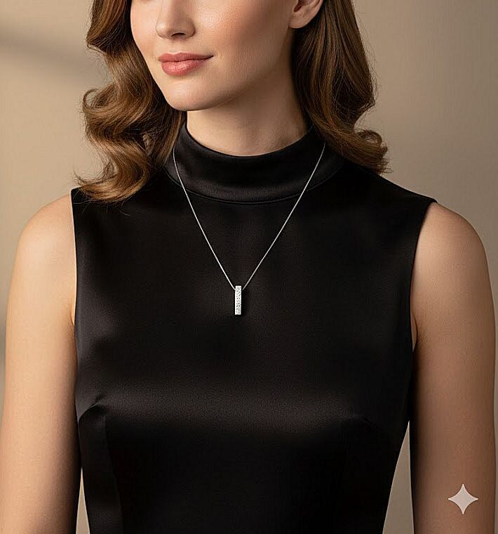 シンプルなデザインがどんなスタイルにも合わせやすく、胸元から気品あふれる上品なスタイルに仕上げてくれます。