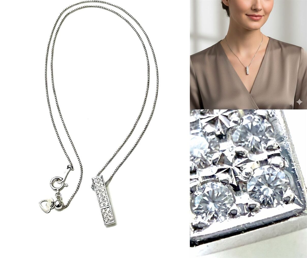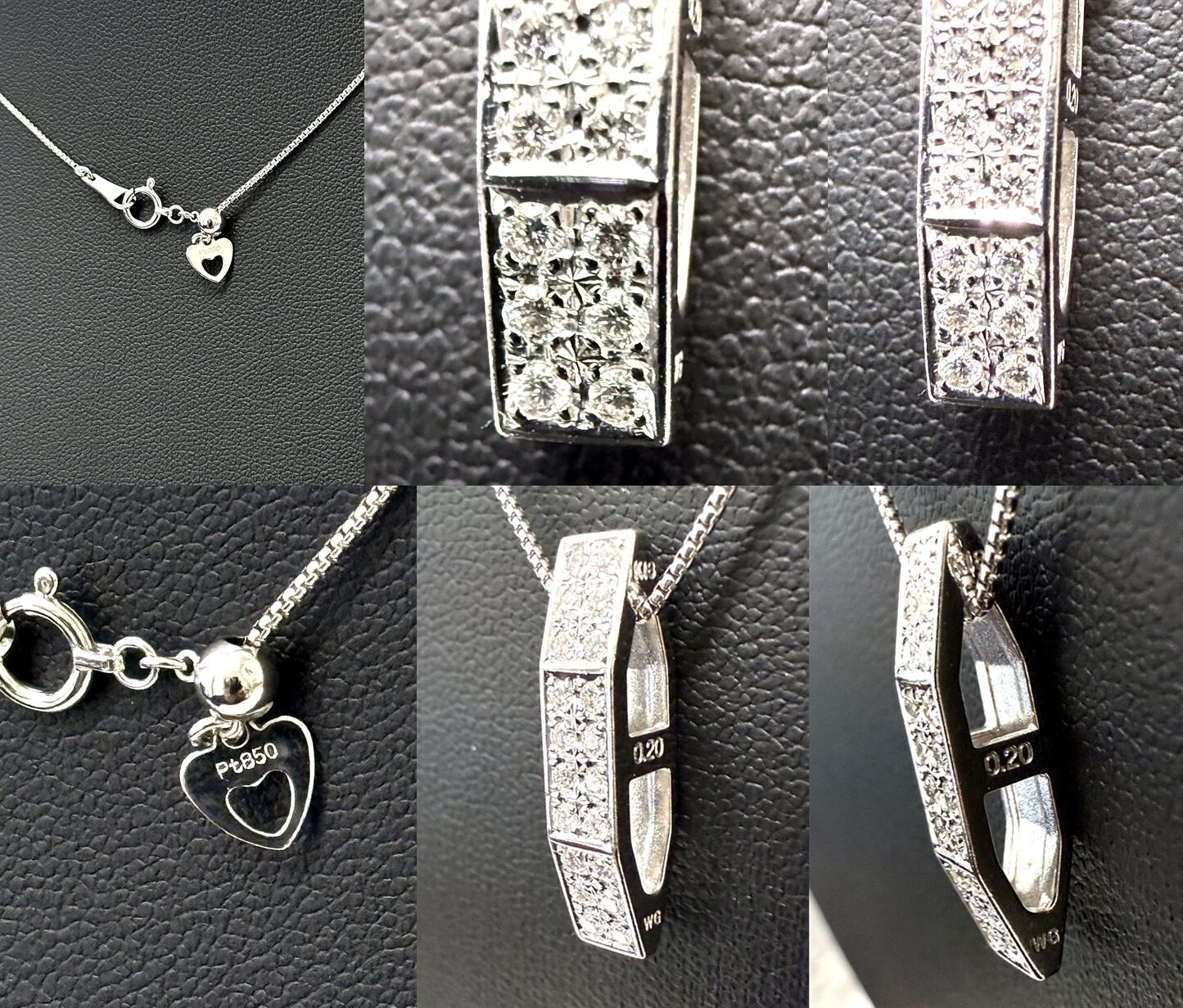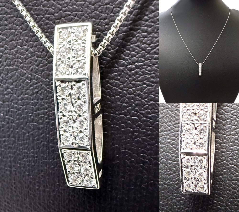 上質な輝きを放つ20石の透明度の高いダイヤモンドに、プラチナチェーンとホワイトゴールドの存在感あるフラットバーペンダント。
