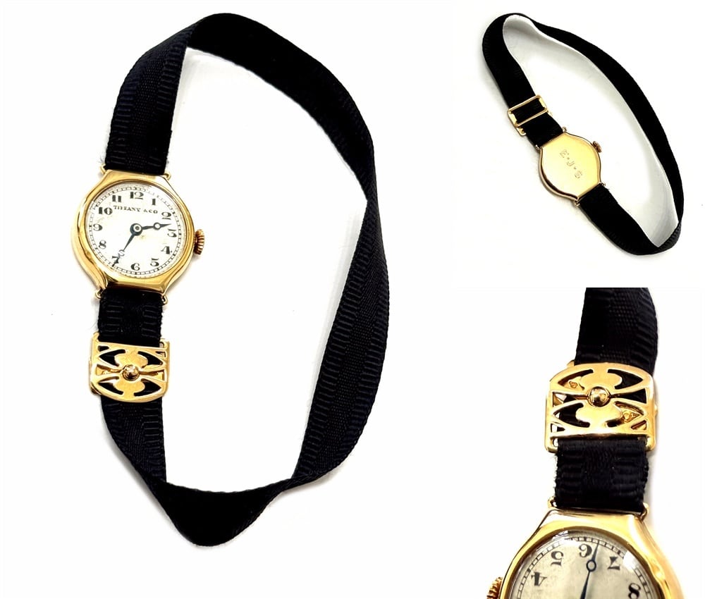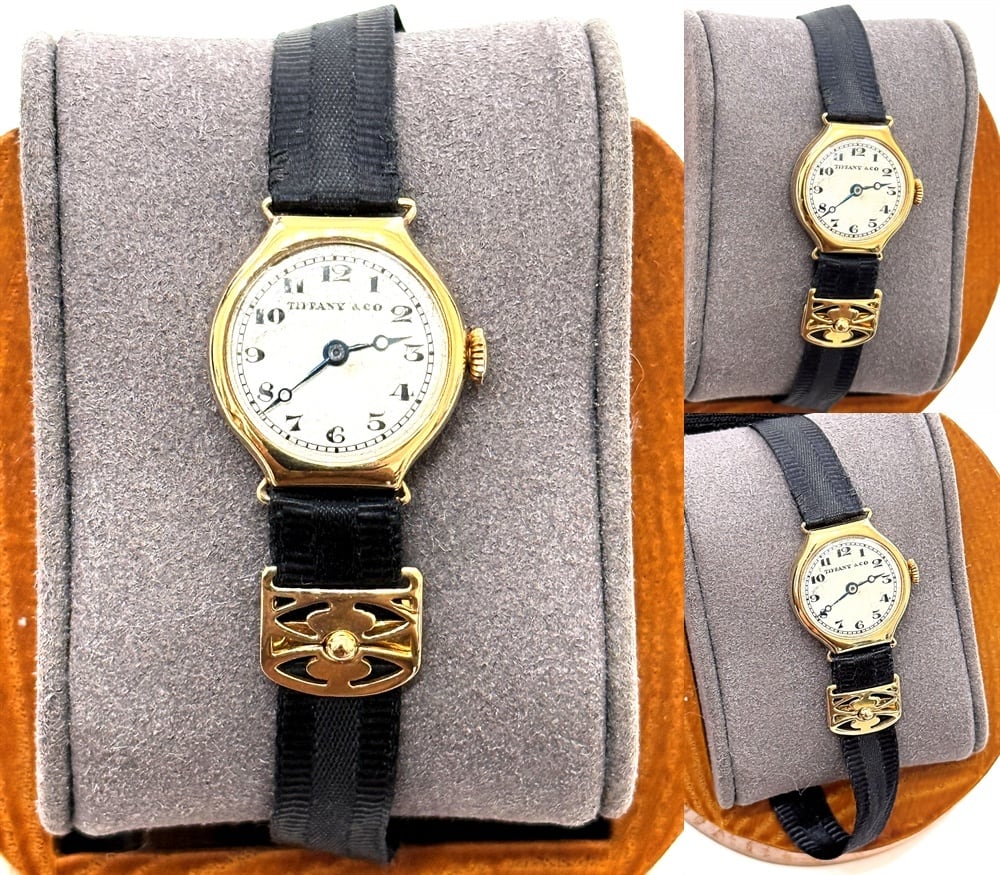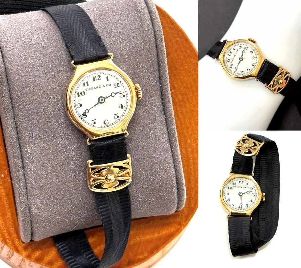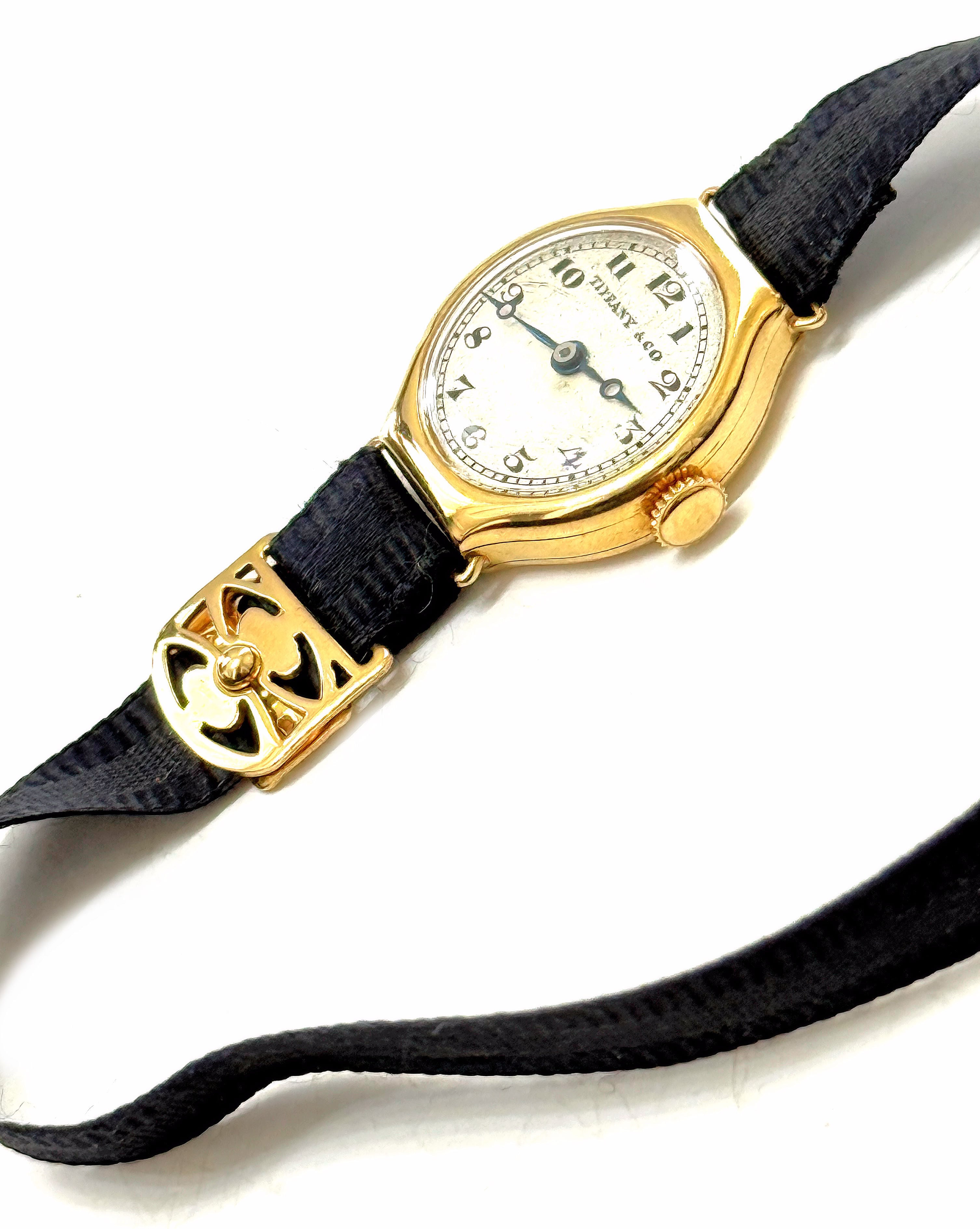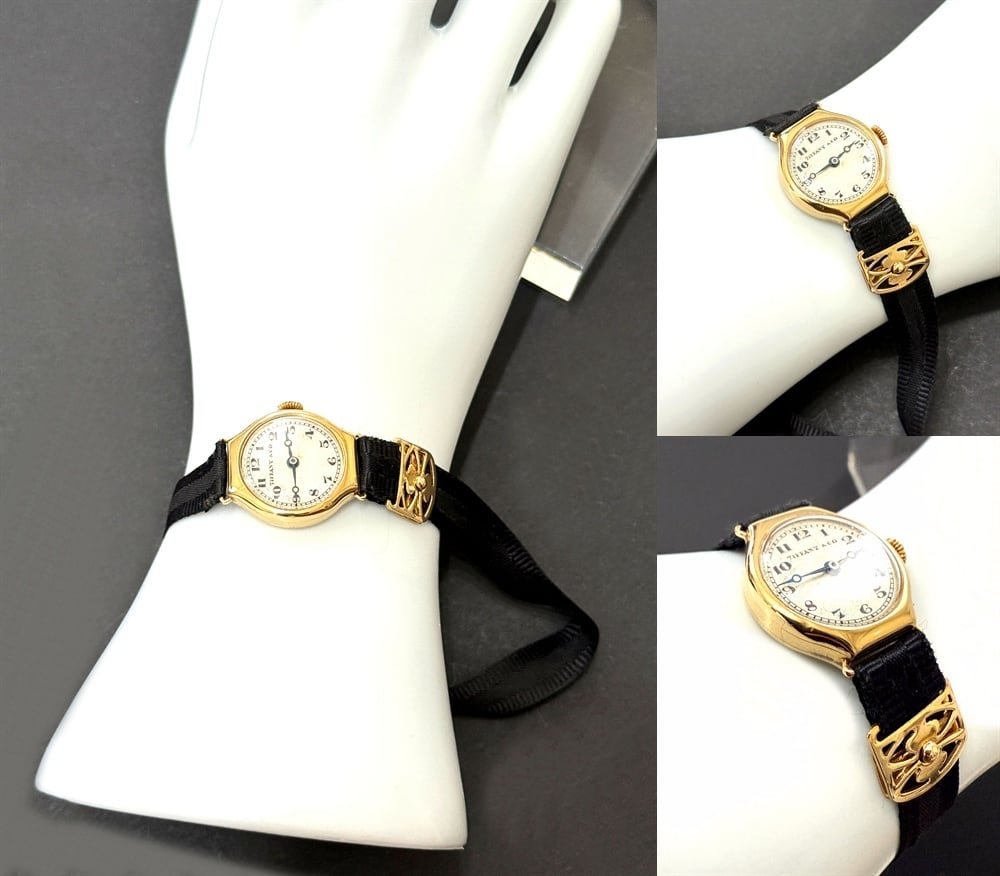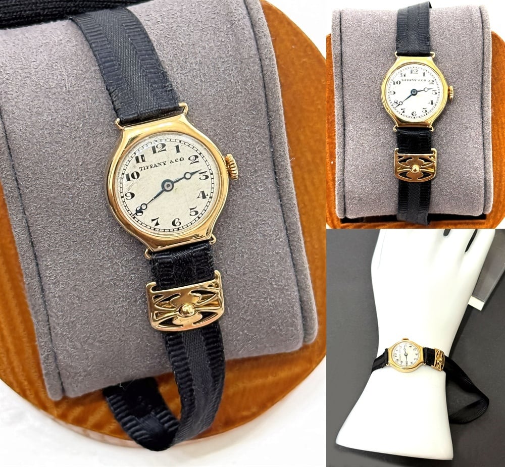 ティファニーの希少なアンティークウォッチ、ケースと尾錠にイエローゴールドを使用した希少なクラシックウォッチです。