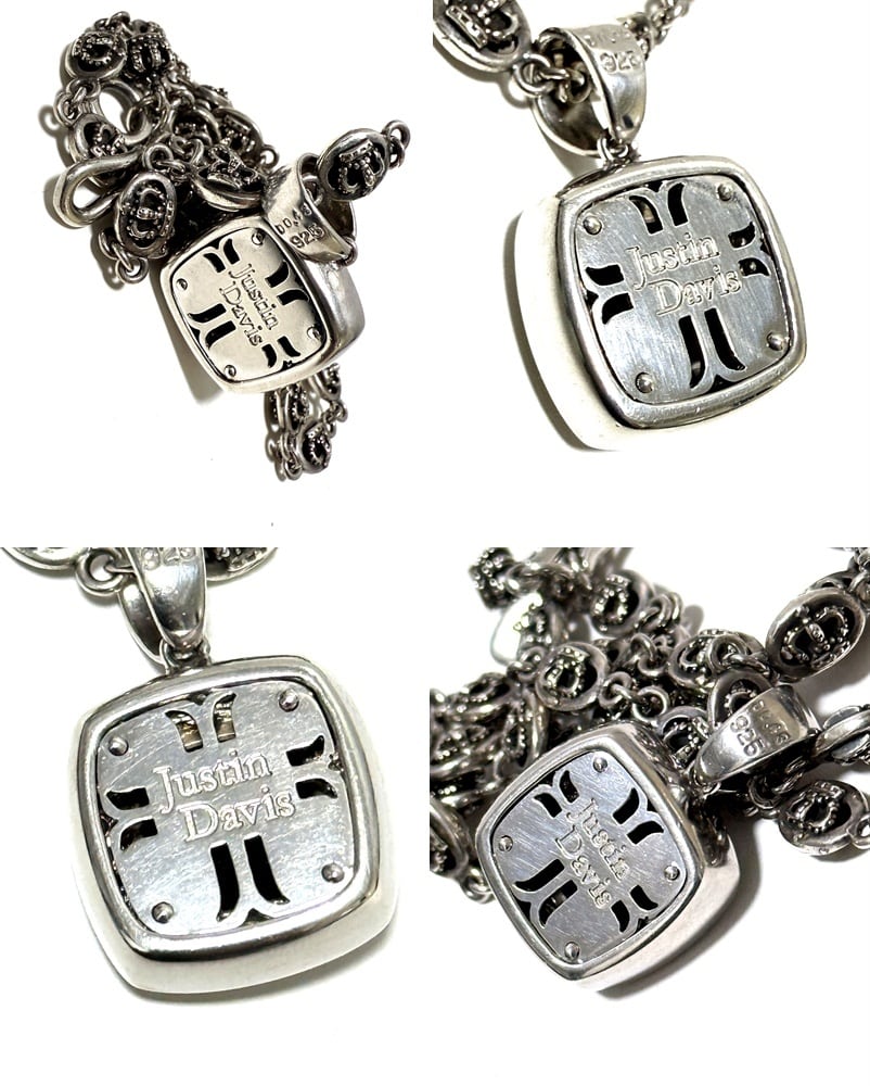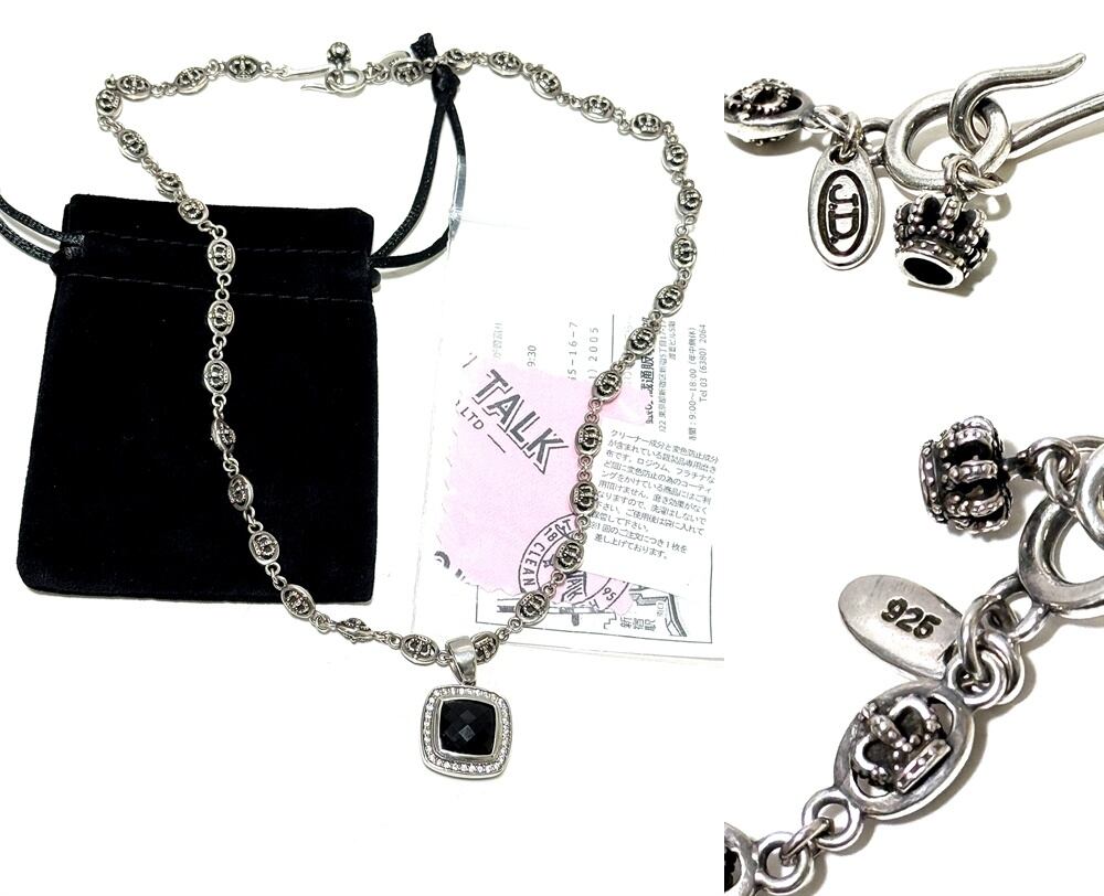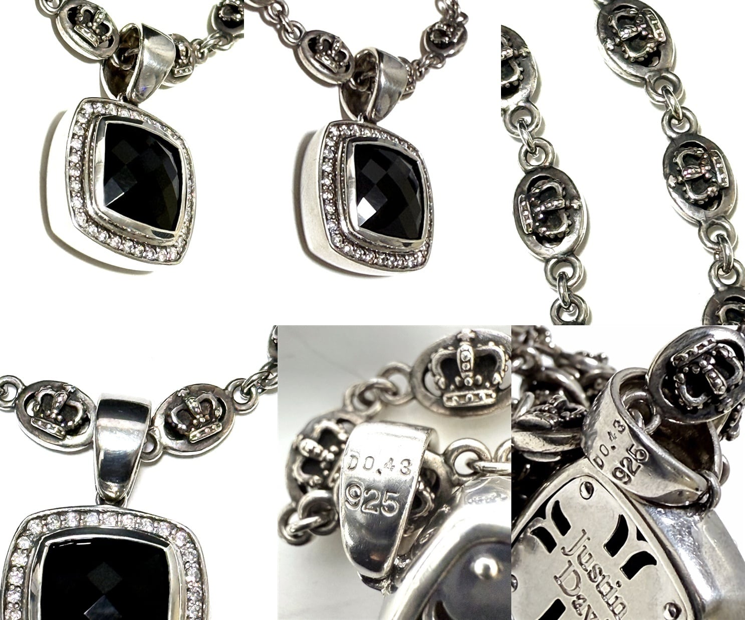 Justin Davis ジャスティンデイビス MTS ペンダント ダイヤモンド オニキス ネックレス QE2 クラウン チェーン 50cm 0.43ct パヴェ ダイヤ