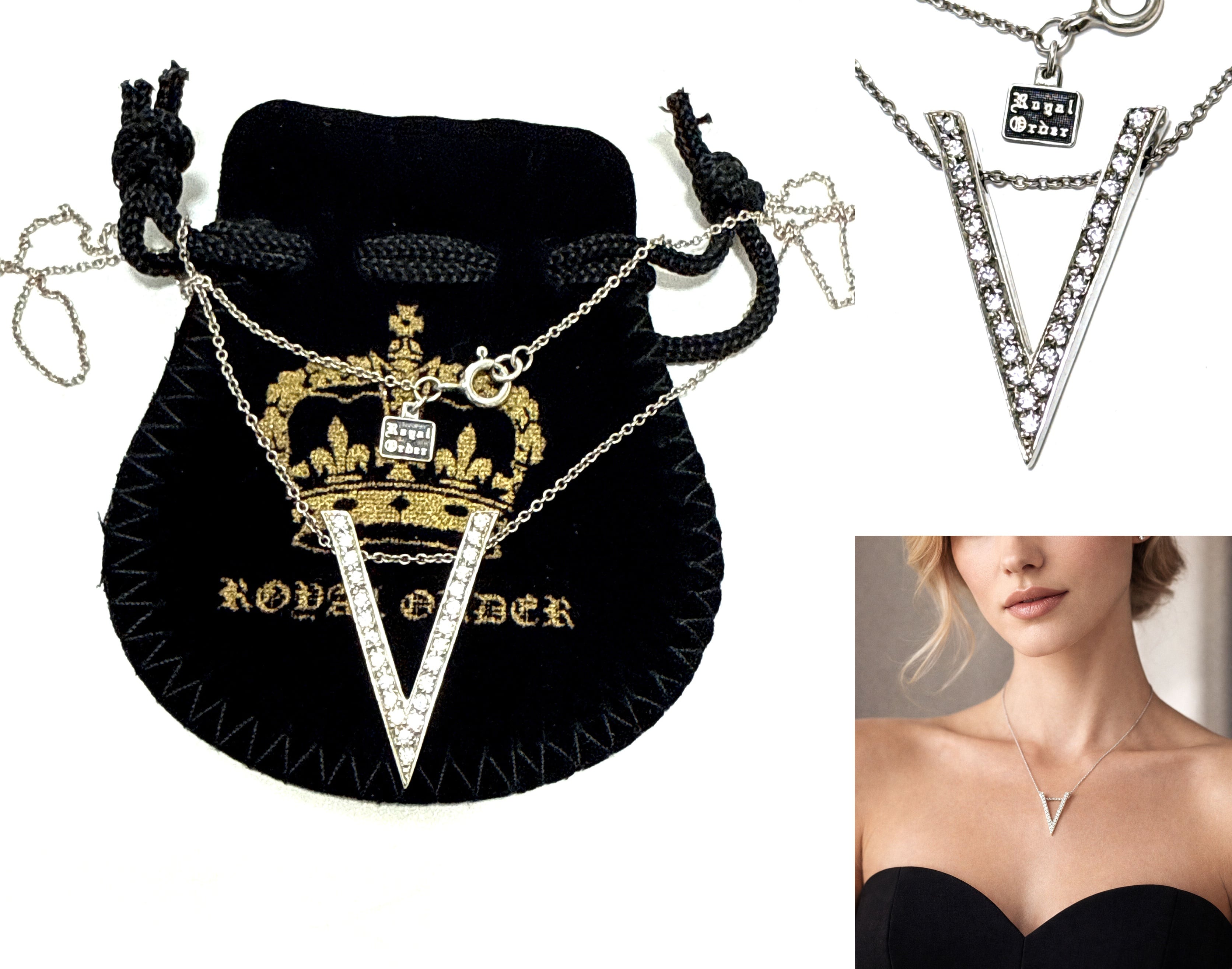 ROYAL ORDER ロイヤルオーダー SHOWGIRL w PAVE CZ パヴェ V ペンダント ネックレス 定価93500円
