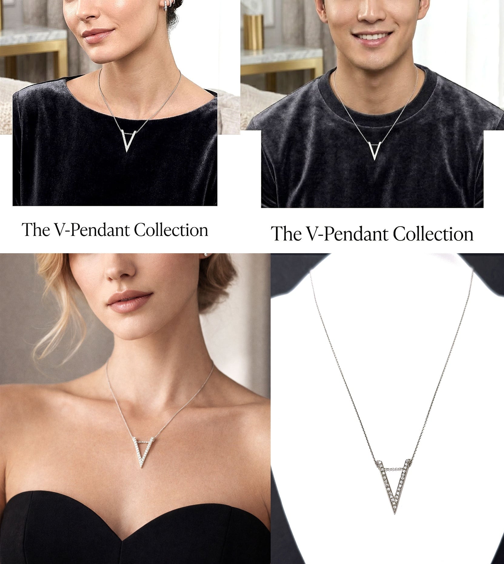 スタイリッシュなVデザインのトップには美しい輝きを放つCZ Clear(CUBIC ZIRCONIA)が輝きます。