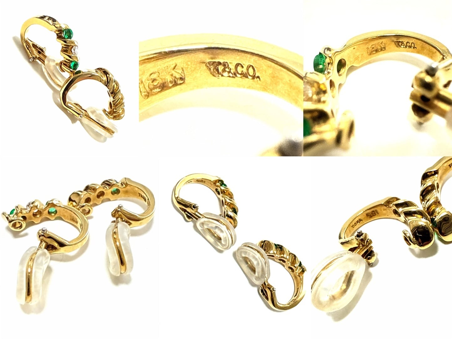 TIFFANY ティファニー エメラルド ダイヤモンド イヤリング ツイスト K18 YG イエローゴールド ヴィンテージ 希少 入手困難