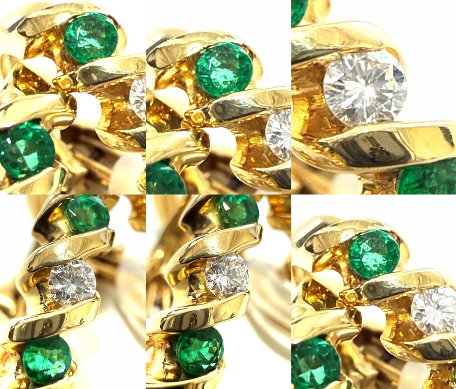 高級感あるイエローゴールドに透明度の高いエメラルドとダイヤモンドが光り輝きます。