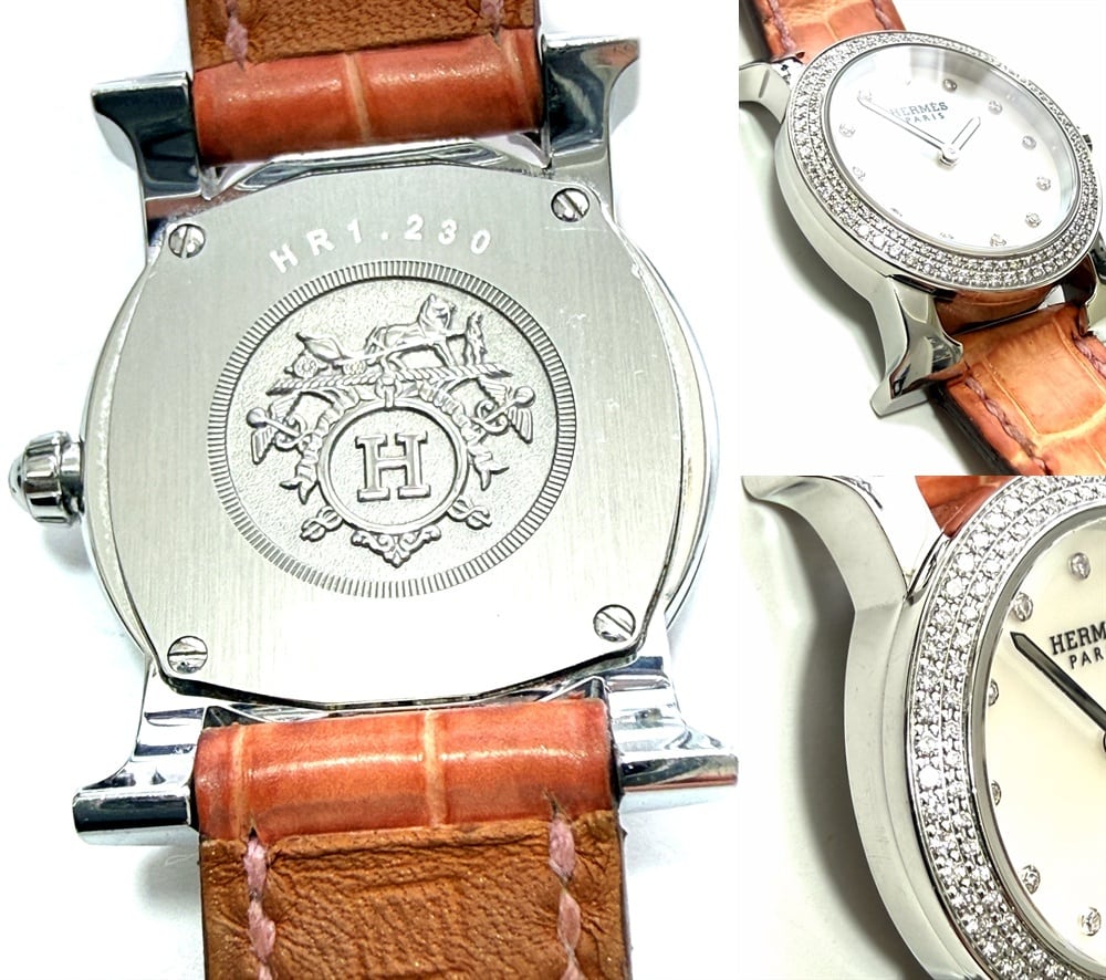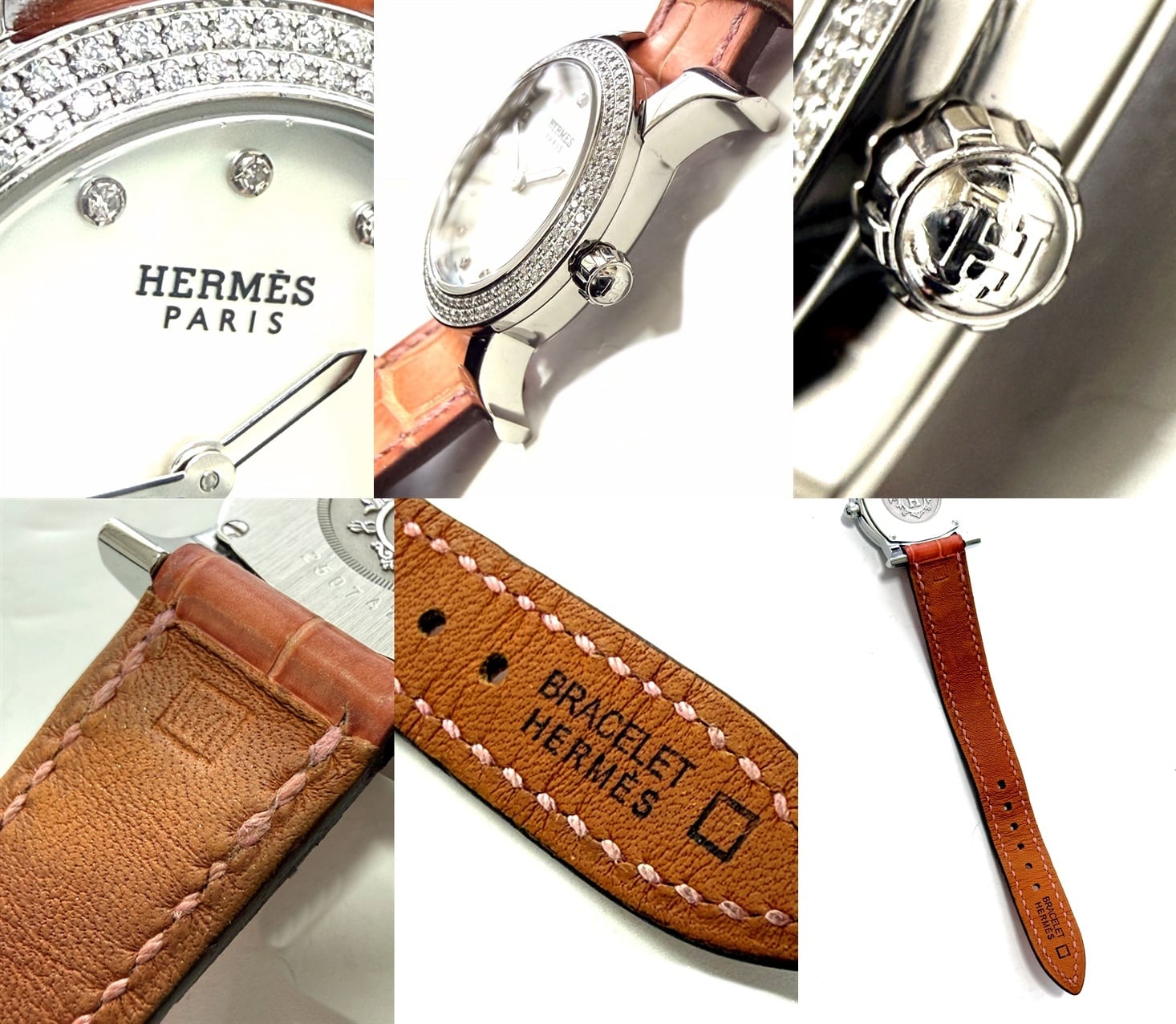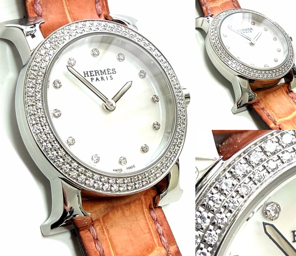 HERMES エルメス Hウォッチ ロンド ダイヤモンド シェル 純正 パヴェ ダイヤ 時計 レディース ケース付き