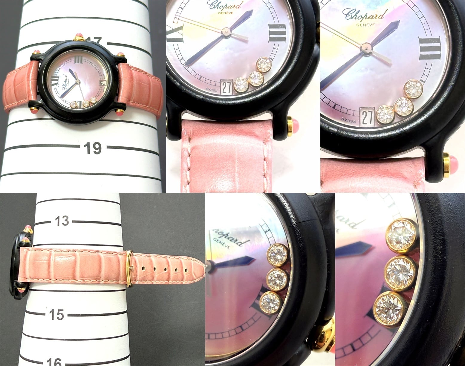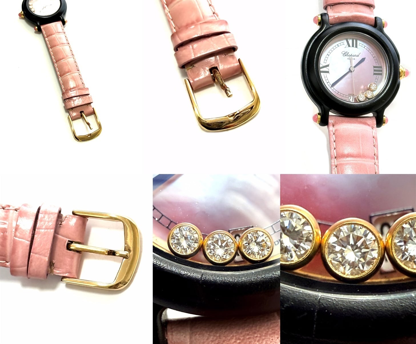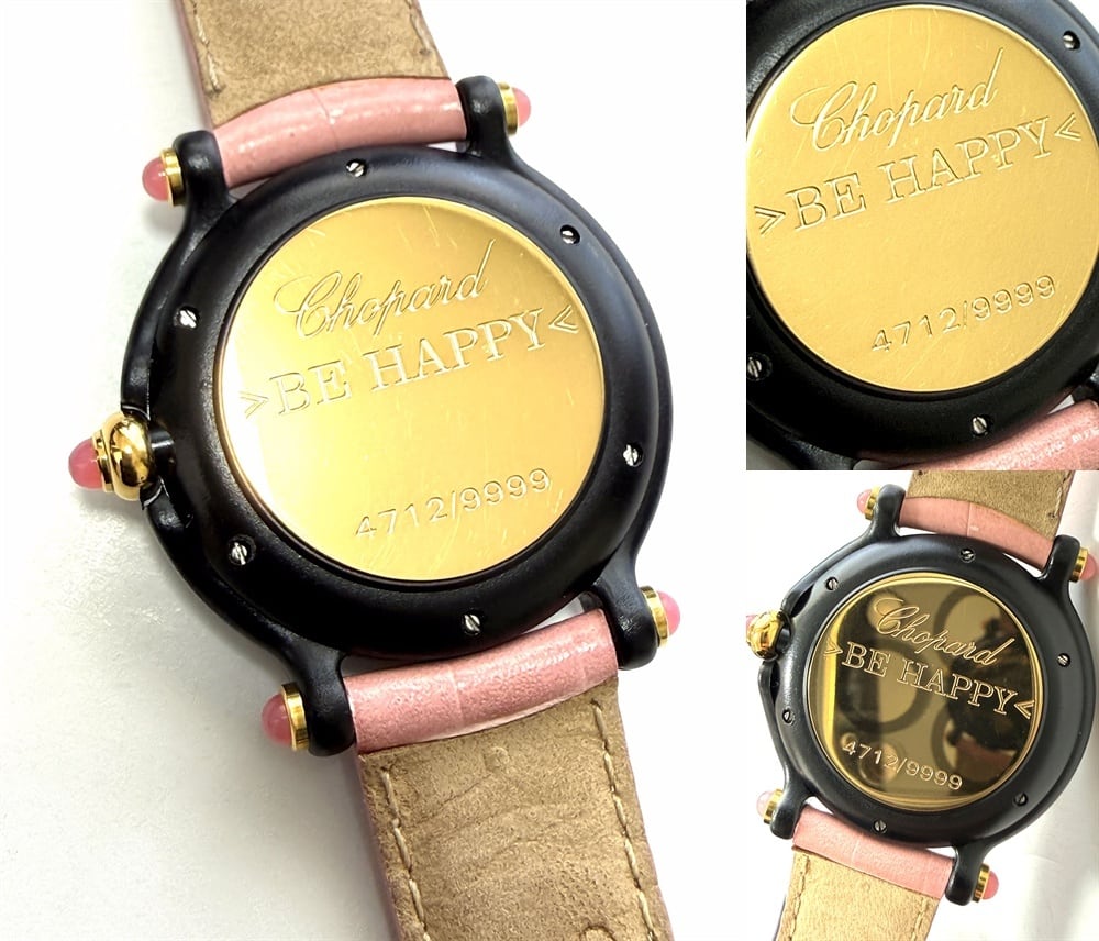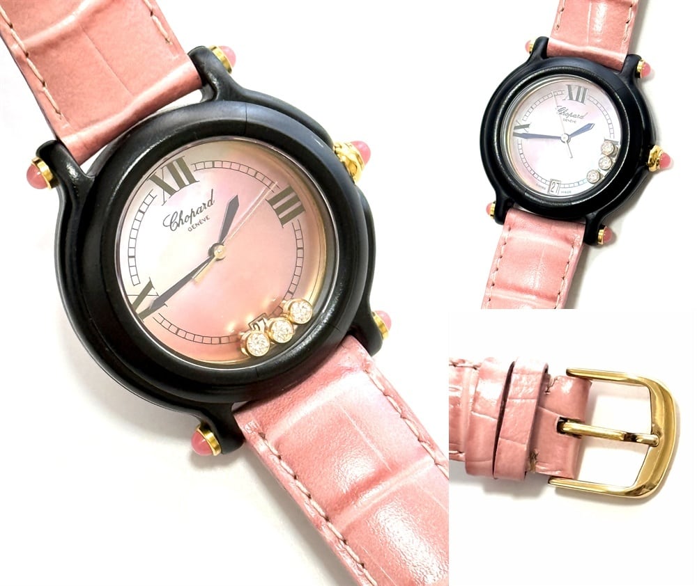 9999本 限定 Chopard ショパール BE HAPPY ムービングダイヤ 時計 ピンクシェル デイト クォーツ 3P ビーハッピー クロコ レザー