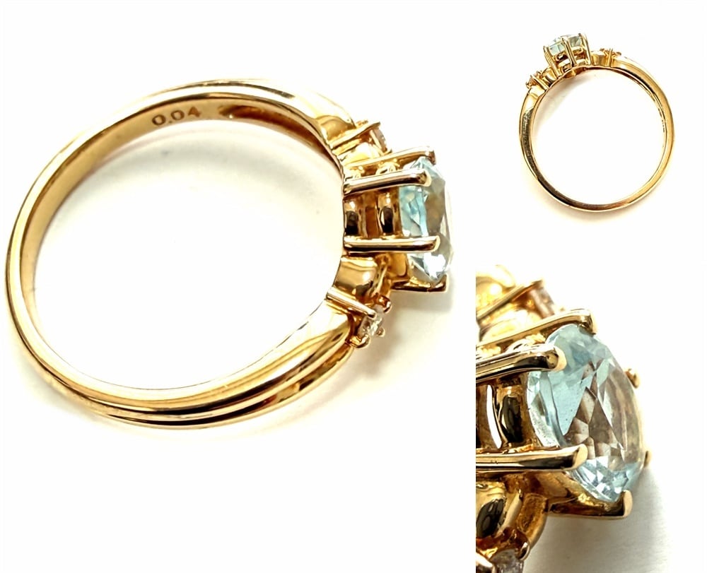 TASAKI タサキ アクアマリン ダイヤモンド リング K18 YG イエローゴールド 指輪 12号 0.04ct 大粒 マーキス