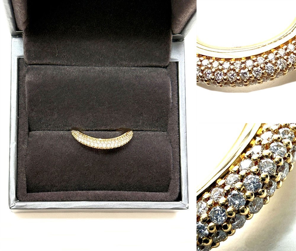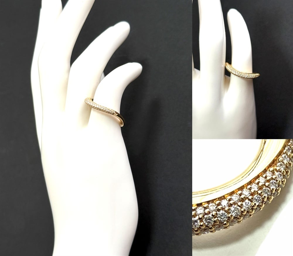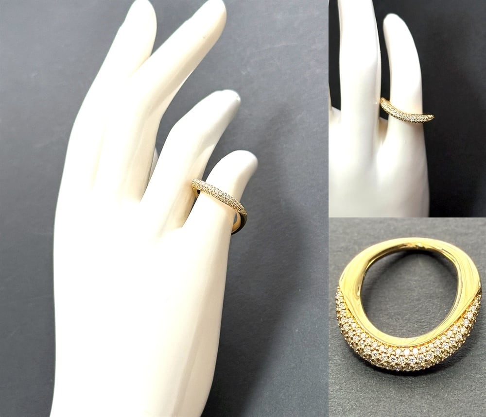 18Kゴールドを素材に、手作業で丁寧にブリリアントカットダイアモンドのパヴェセットを施したエレガントなリング。