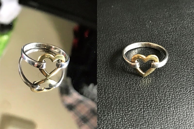 ティファニー オープンハート K18×SV925 コンビ リング 750/925