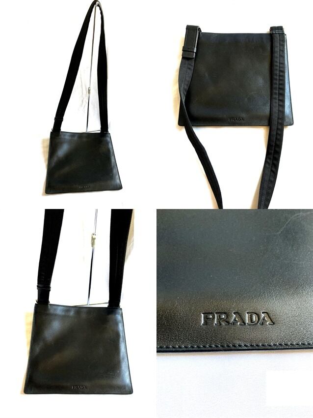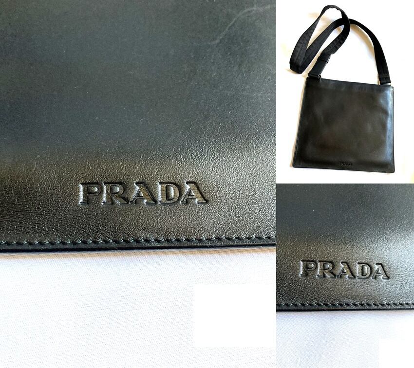 PRADA プラダ ブラック レザー ショルダーバッグ メンズ