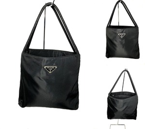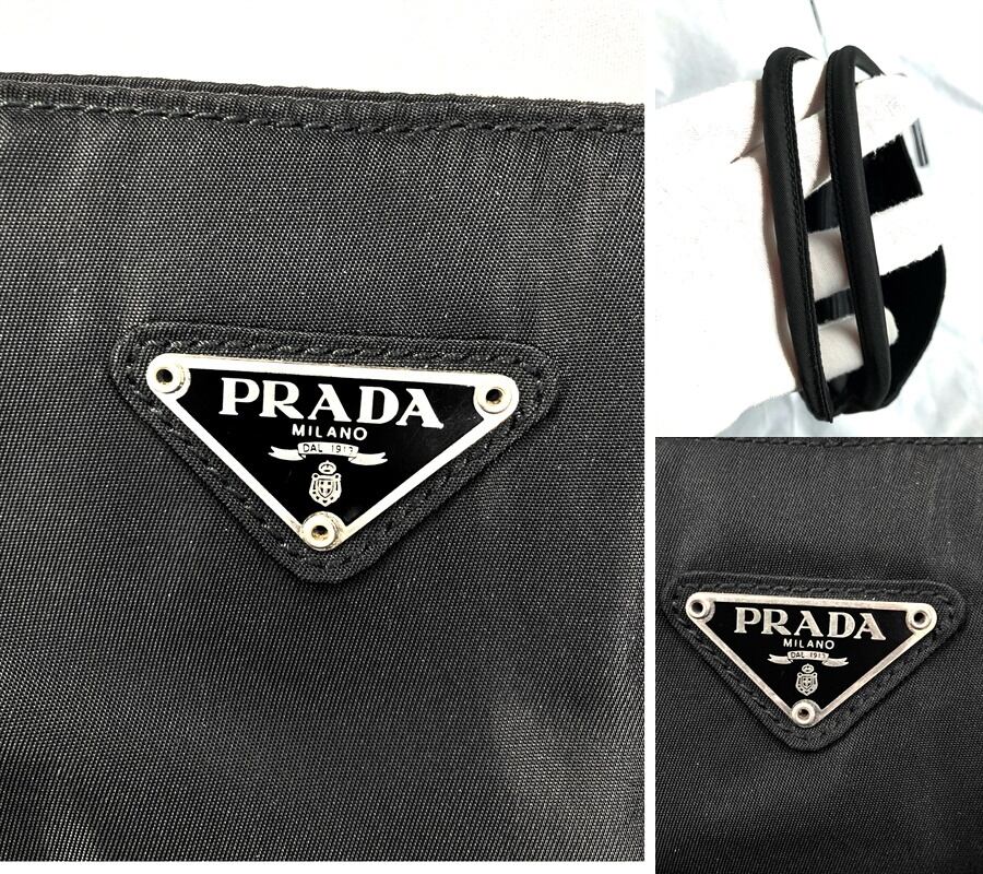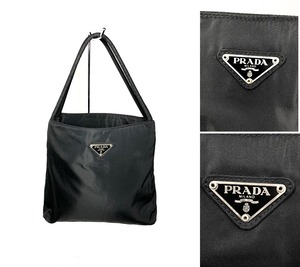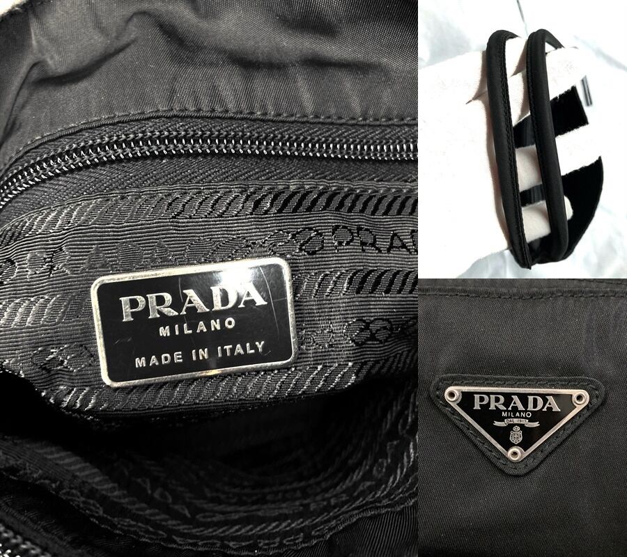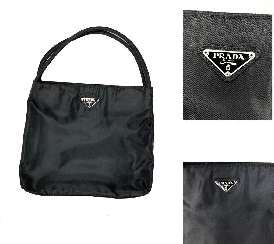 美品 PRADA プラダ ロゴ プレート ミニ ハンドバッグ トート バッグ ブラック 黒 レア B6243