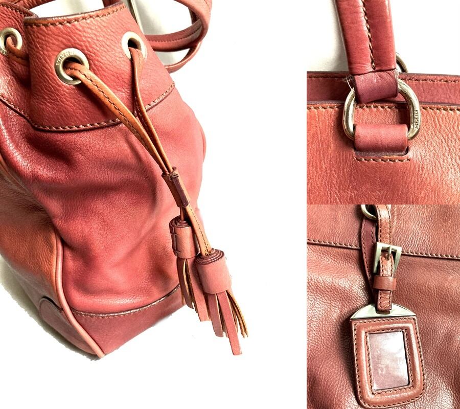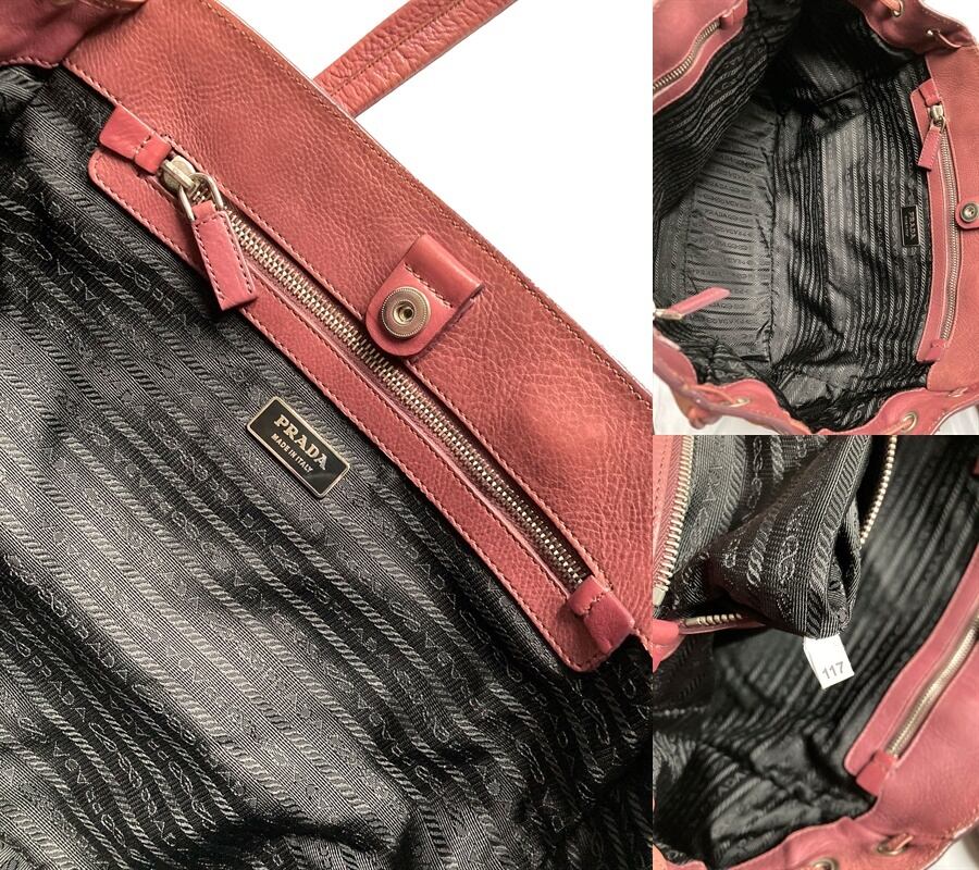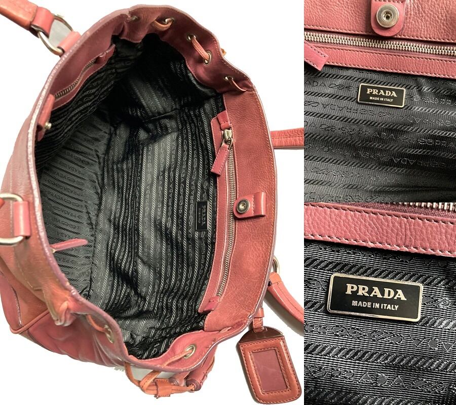 PRADA プラダ ロゴ プレート レザー トート ショルダー バッグ ピンク