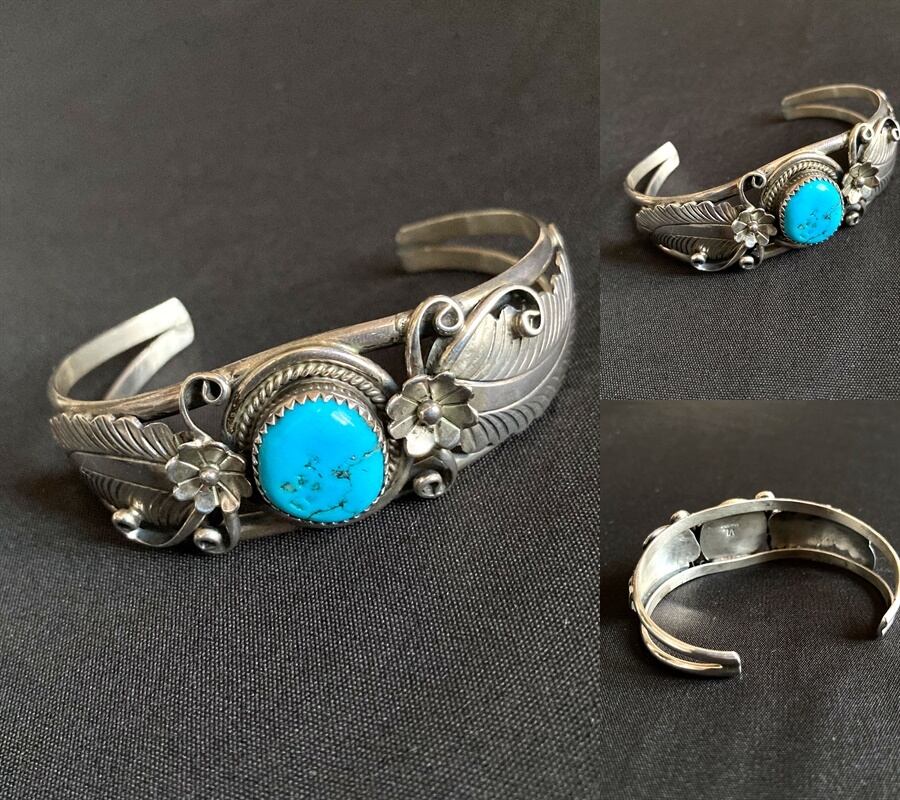 ナバホ Navajo インディアンジュエリー ターコイズ バングル ブレスレット スターリング シルバー 花柄 ナバホ族