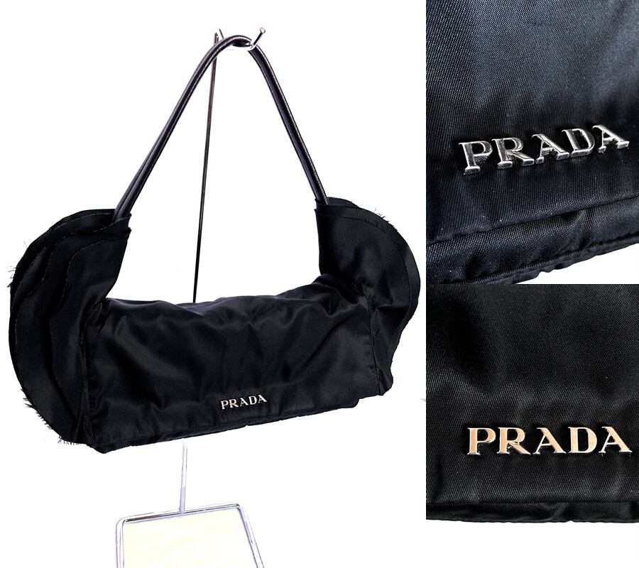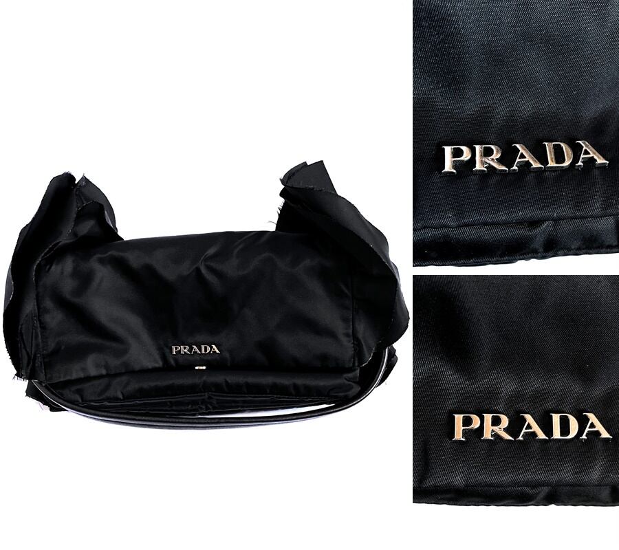 PRADA プラダ ロゴプレート リモンタナイロン×レザー ハンドバッグ & ショルダーバッグ
