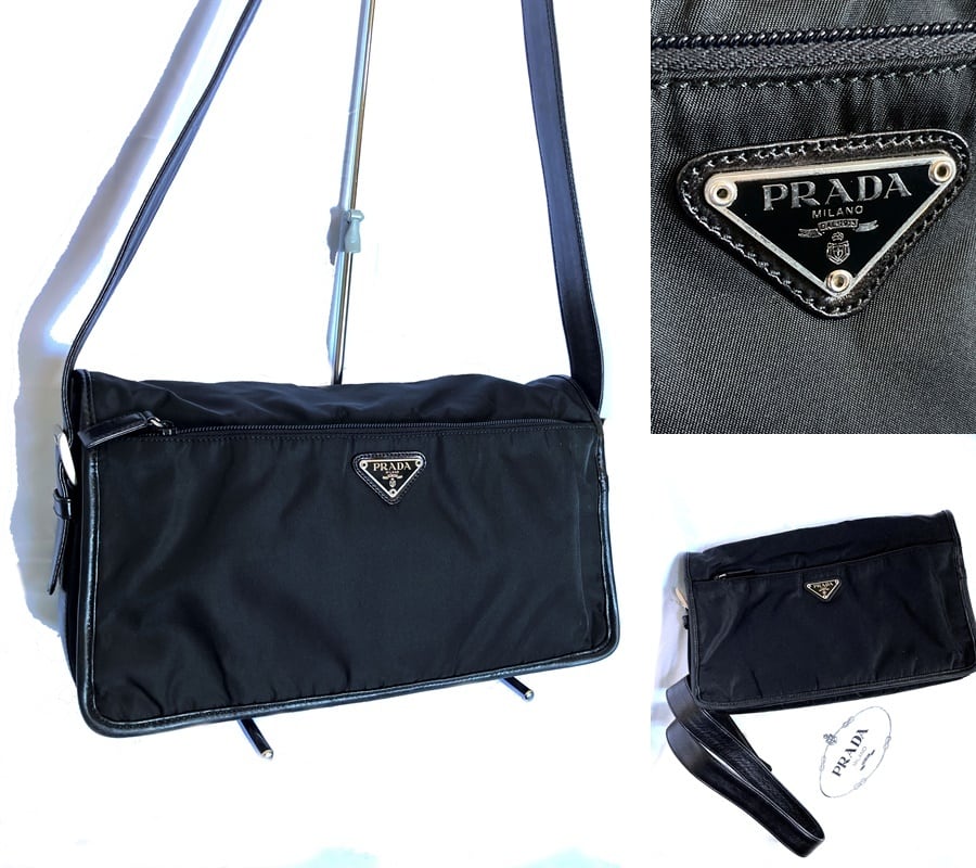 PRADA プラダ ロゴプレート B6732X 両面 ショルダーバッグ&クラッチバッグ 2way NERO(ブラック)